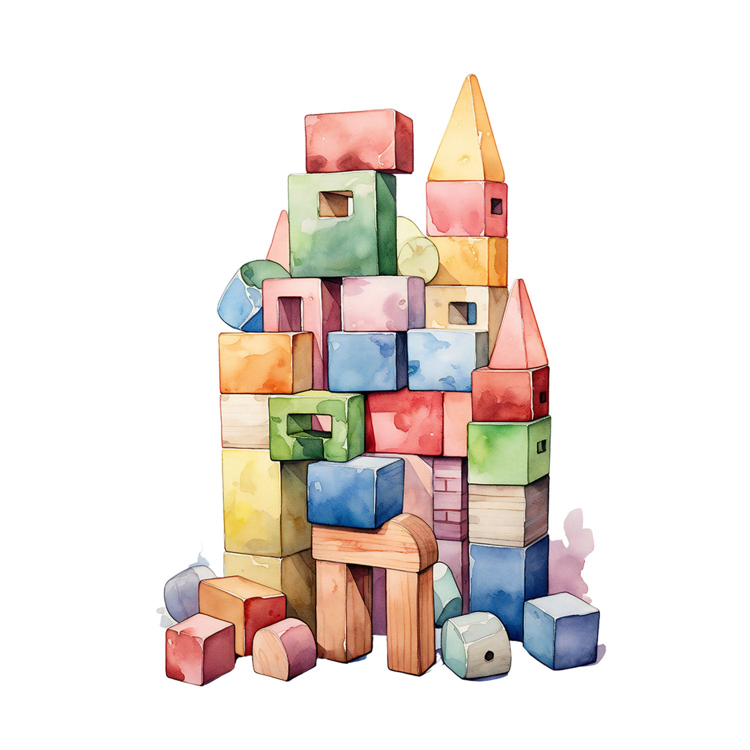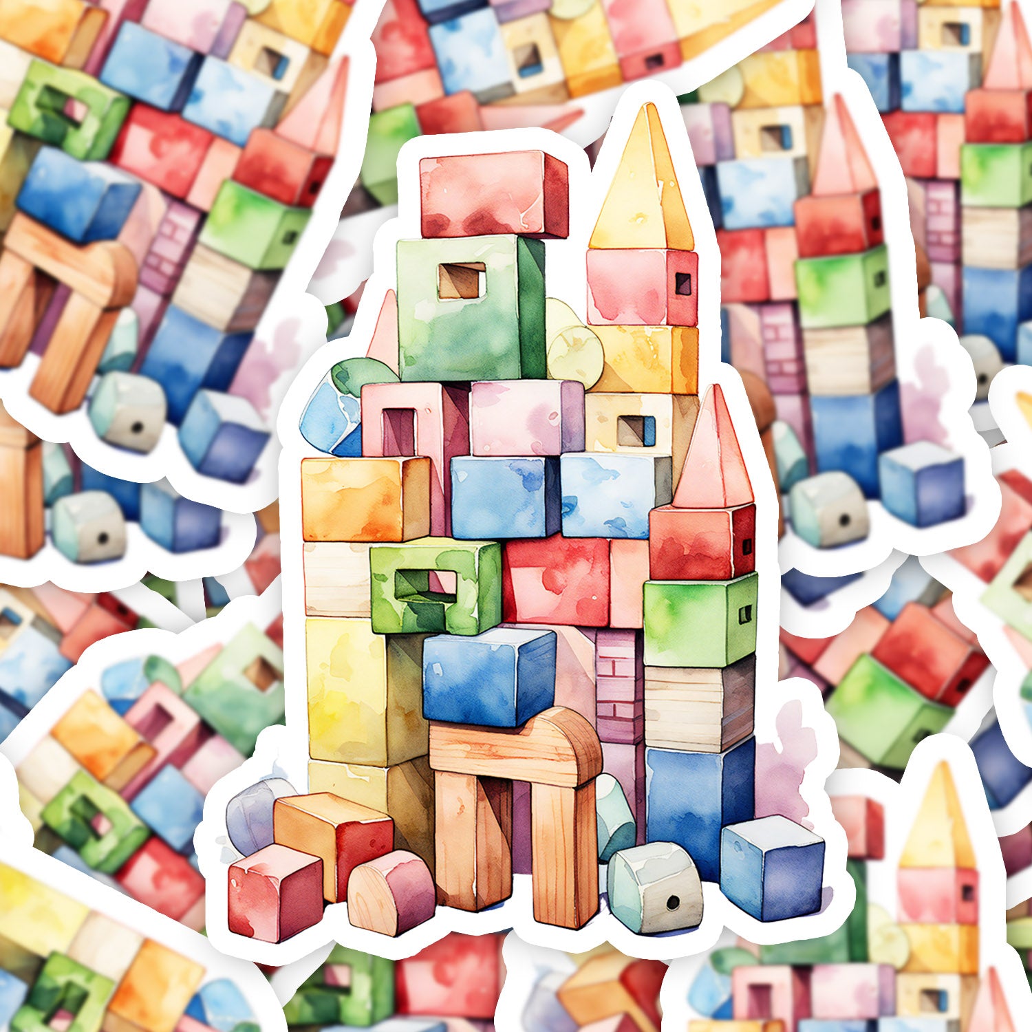 Set 5 bucati, Sticker decorativ, Puzzle din lemn, Rezistent la apa, NO12655, 6 cm, Multicolor