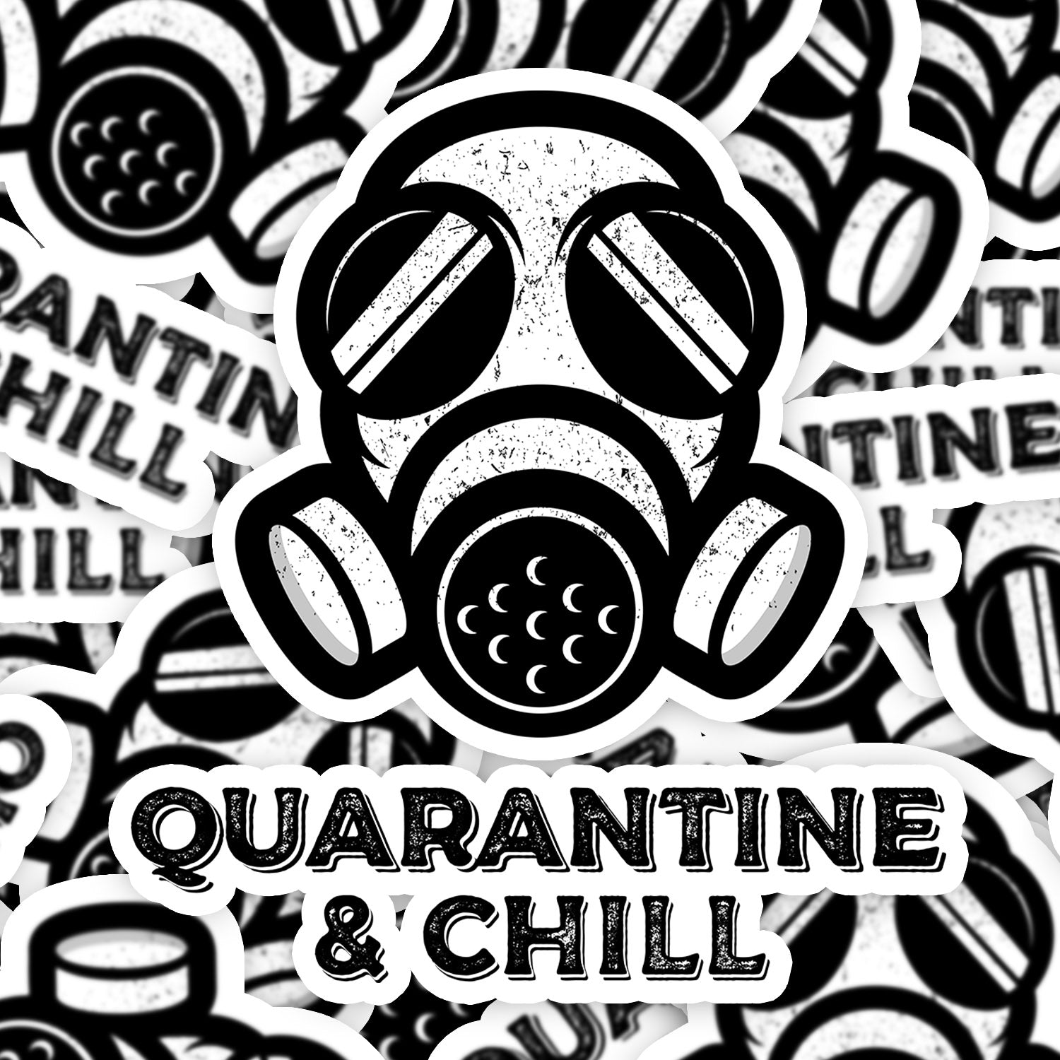 Set 5 bucati, Sticker decorativ, Quarantine and chill, Rezistent la apa, NO13175, 6 cm, Multicolor