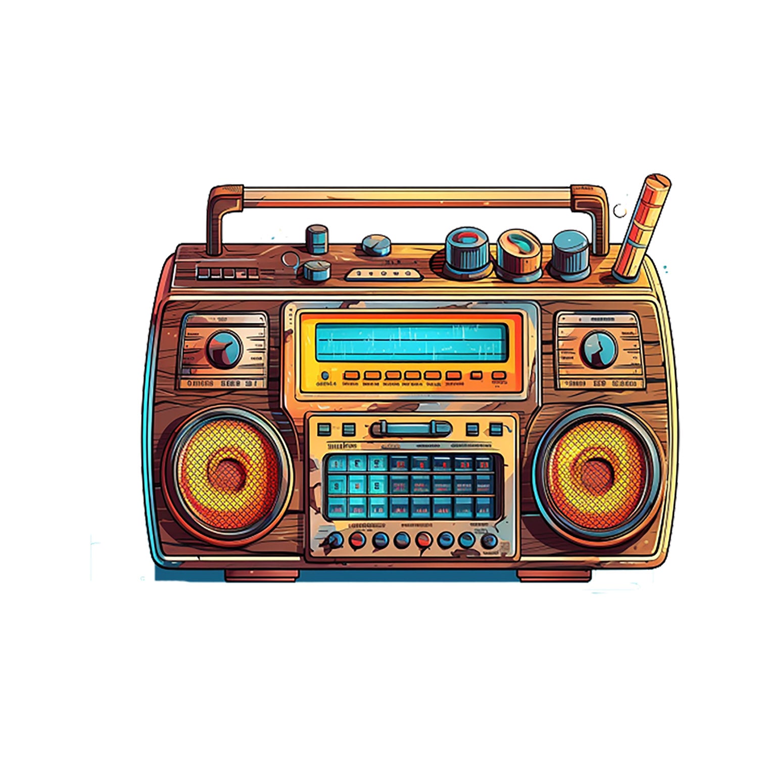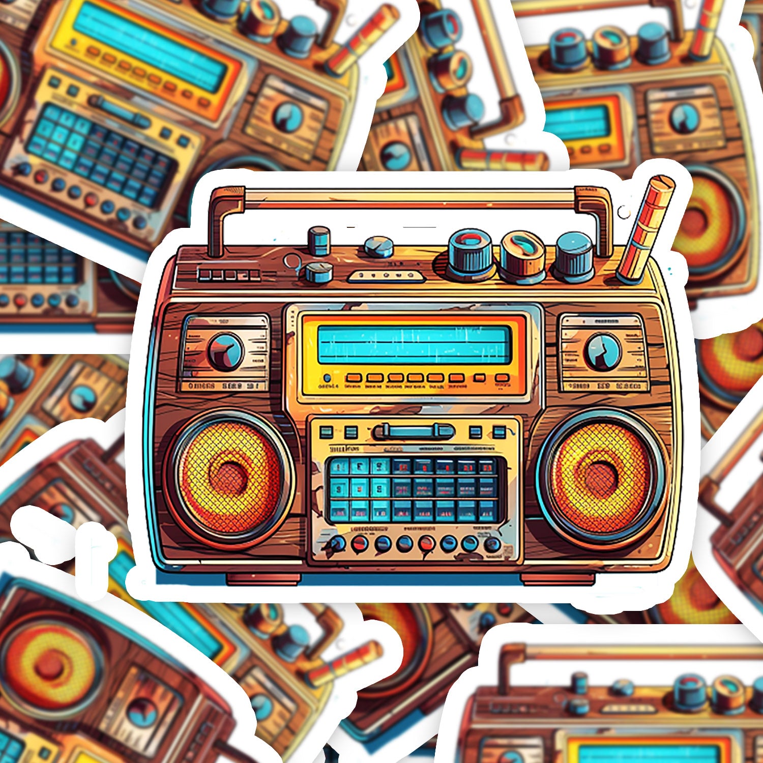 Set 5 bucati, Sticker decorativ, Radio casetofon cu boxe, Rezistent la apa, NO13908, 6 cm, Multicolor