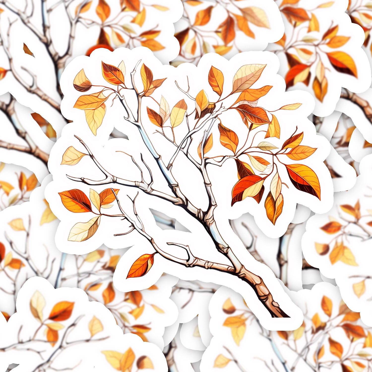 Set 5 bucati, Sticker decorativ, Ramura de toamna tarzie, Rezistent la apa, NO14660, 6 cm, Multicolor