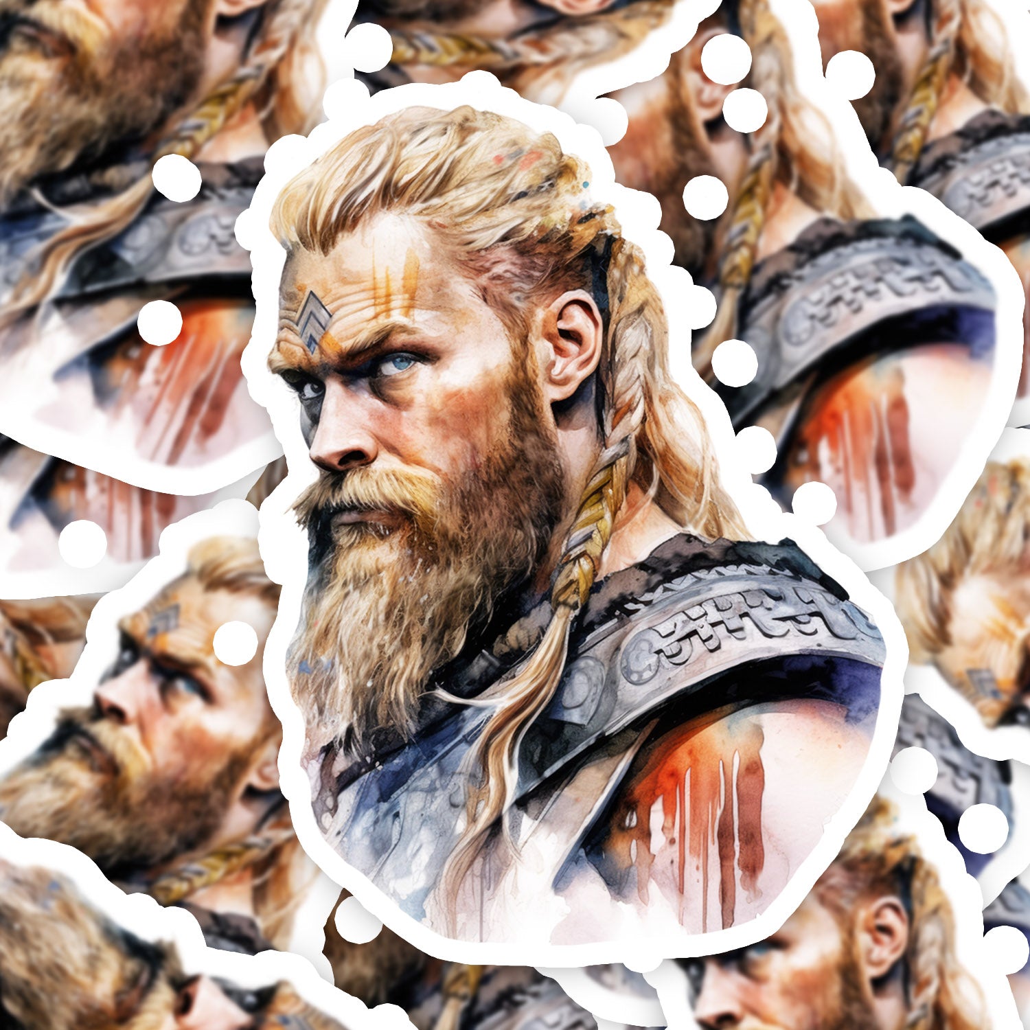 Set 5 bucati, Sticker decorativ, Razboinic viking cu tatuaj in frunte, Rezistent la apa, NO14035, 6 cm, Multicolor