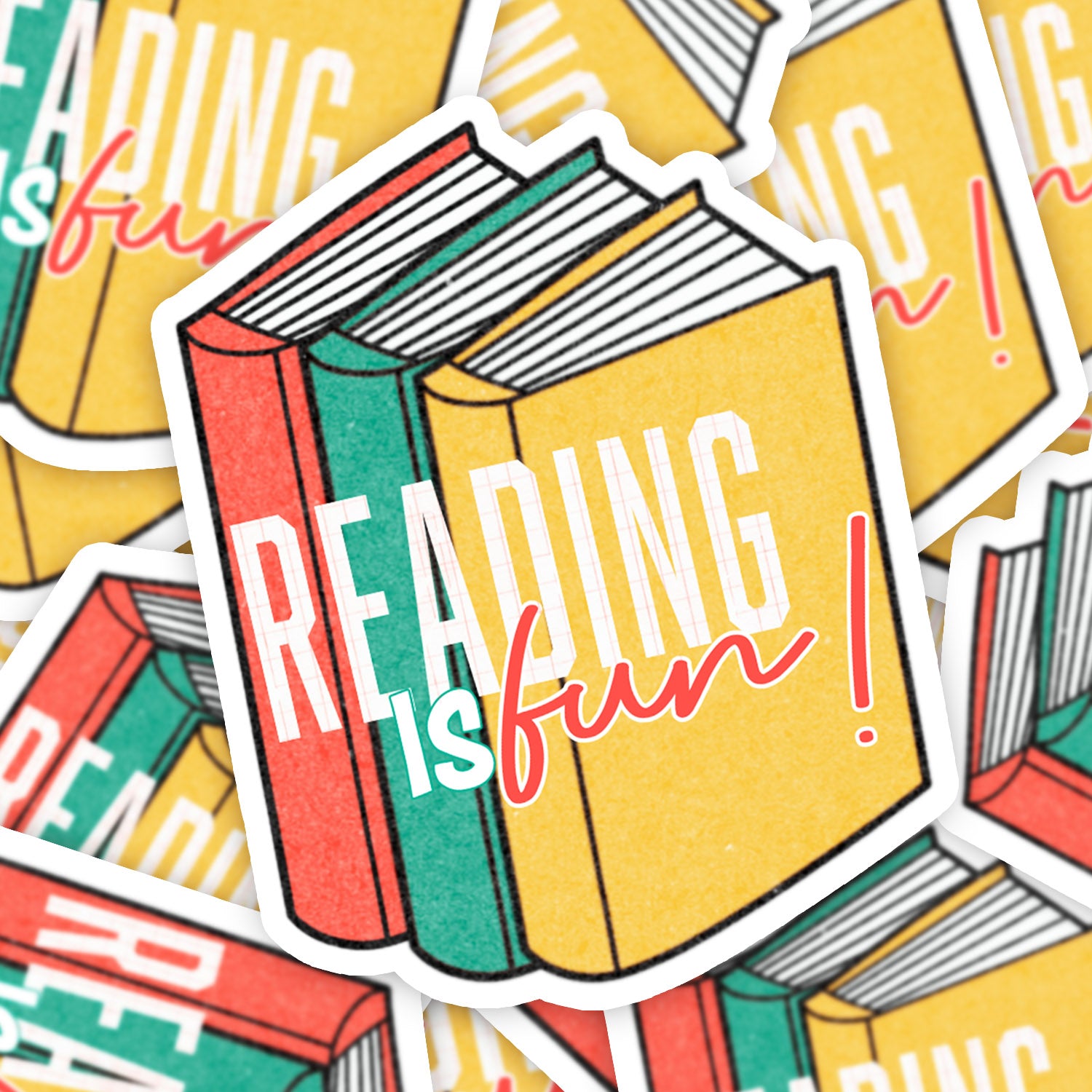 Set 5 bucati, Sticker decorativ, Reading is Fun, Rezistent la apa, NO15105, 6 cm, Multicolor