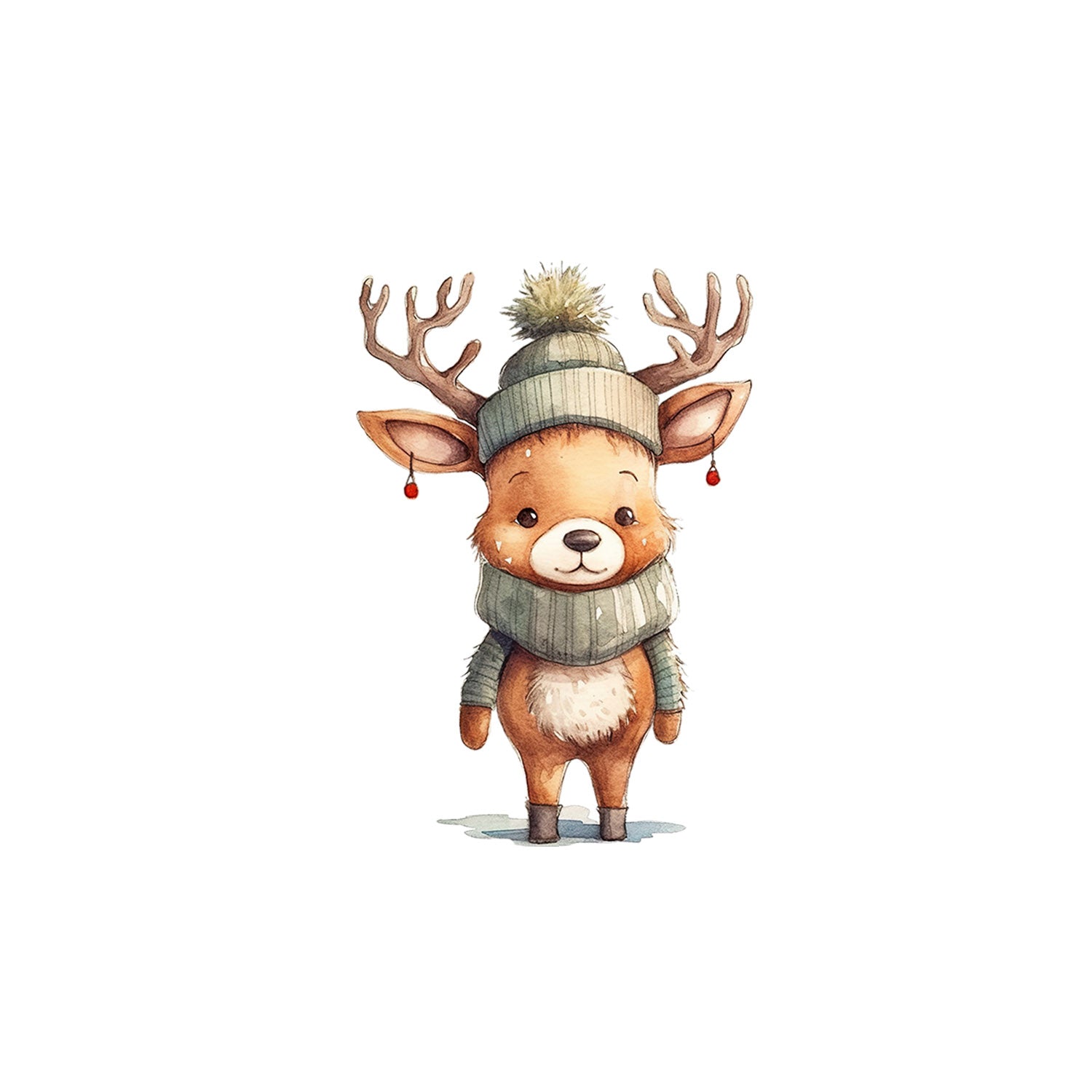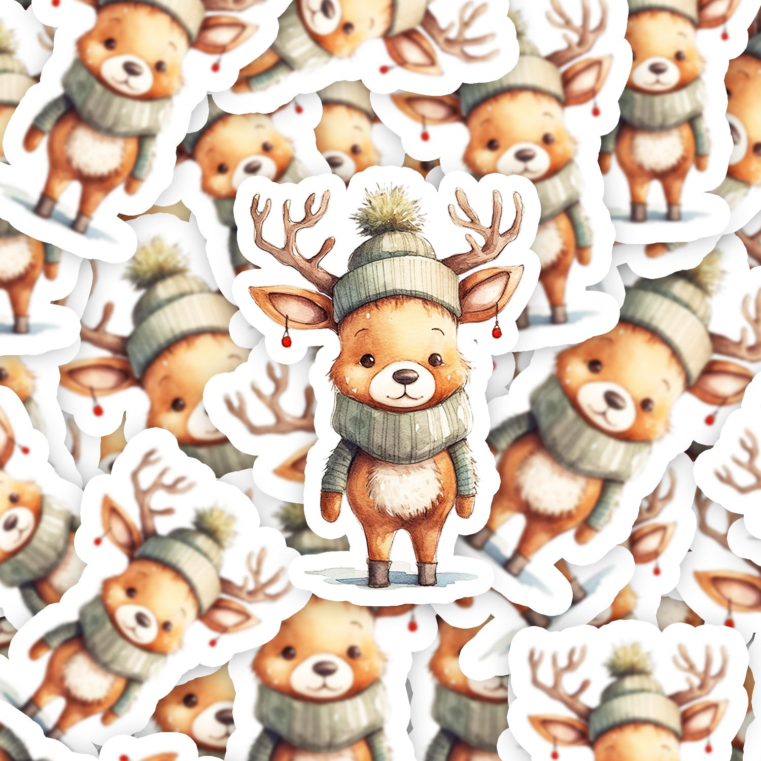 Set 5 bucati, Sticker decorativ, Renul cu caciula si fular, Rezistent la apa, NO16196, 6 cm, Multicolor