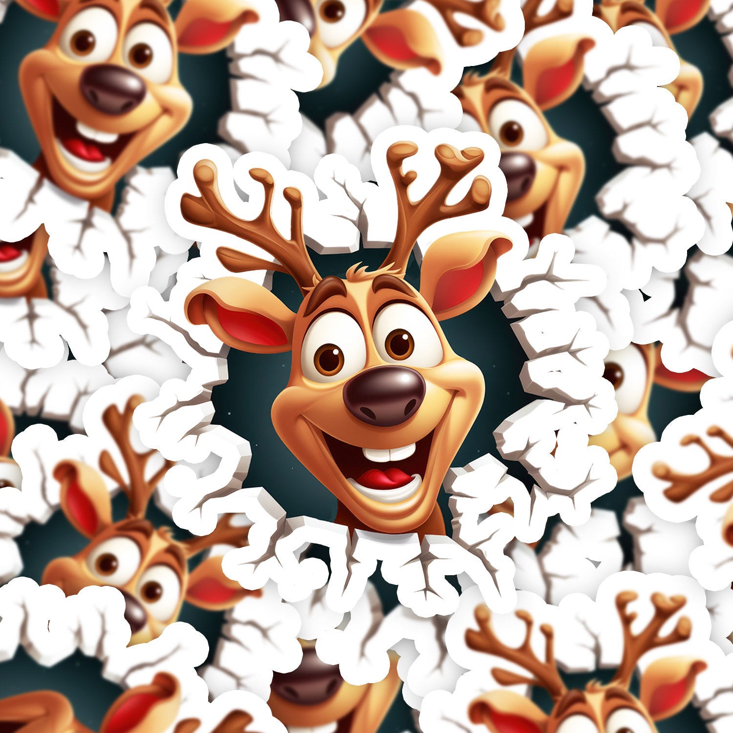 Set 5 bucati, Sticker decorativ, Renul zurbagiu, Rezistent la apa, NO13742, 6 cm, Multicolor