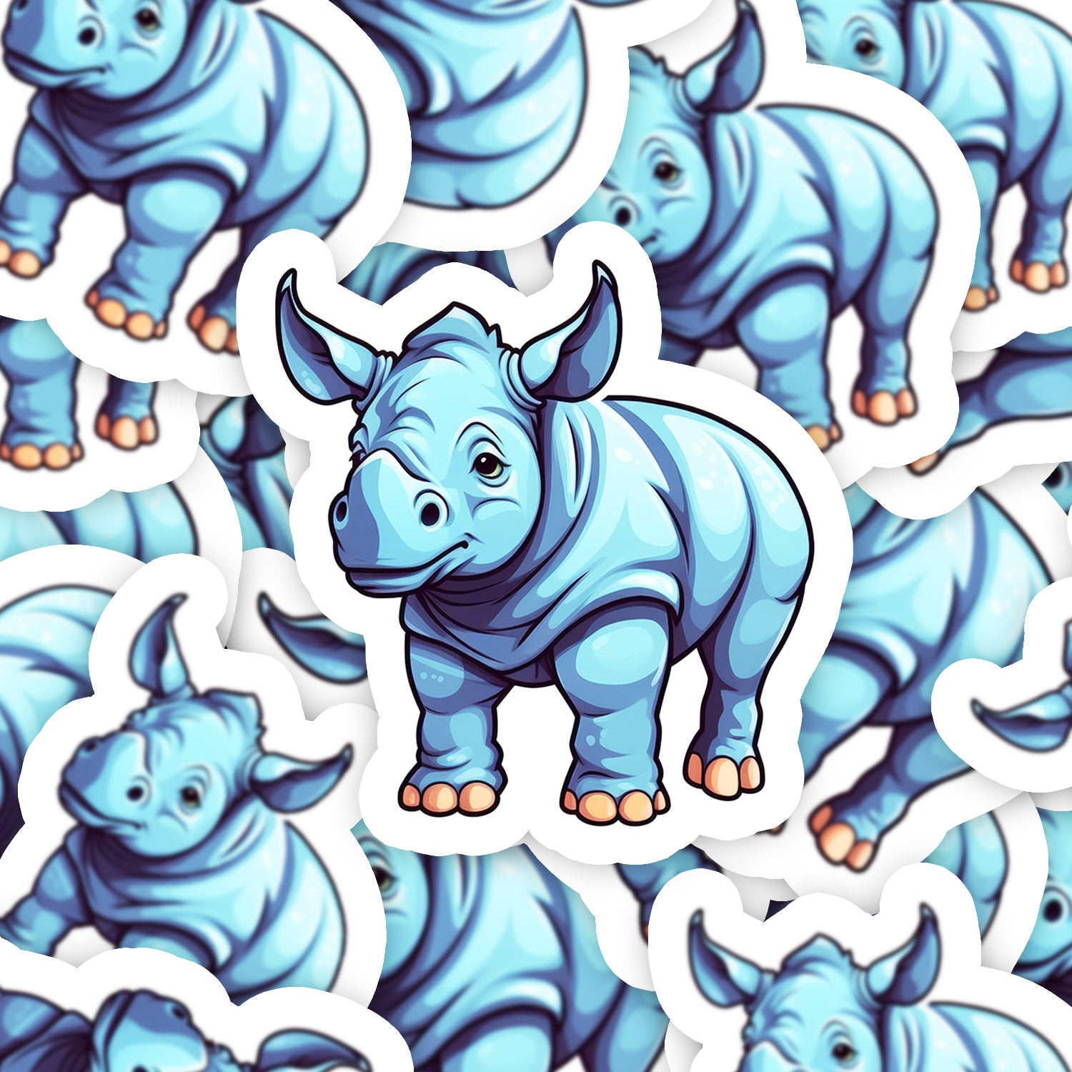 Set 5 bucati, Sticker decorativ, Rinocerul Terry, Rezistent la apa, NO13594, 6 cm, Multicolor