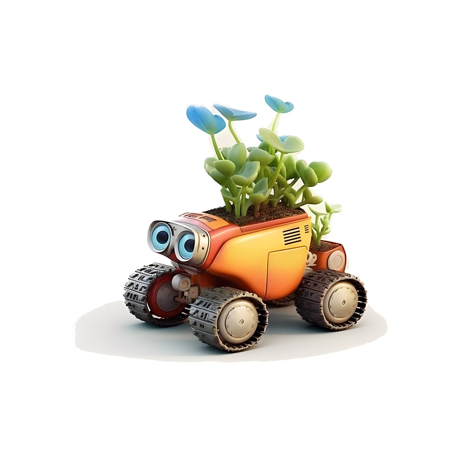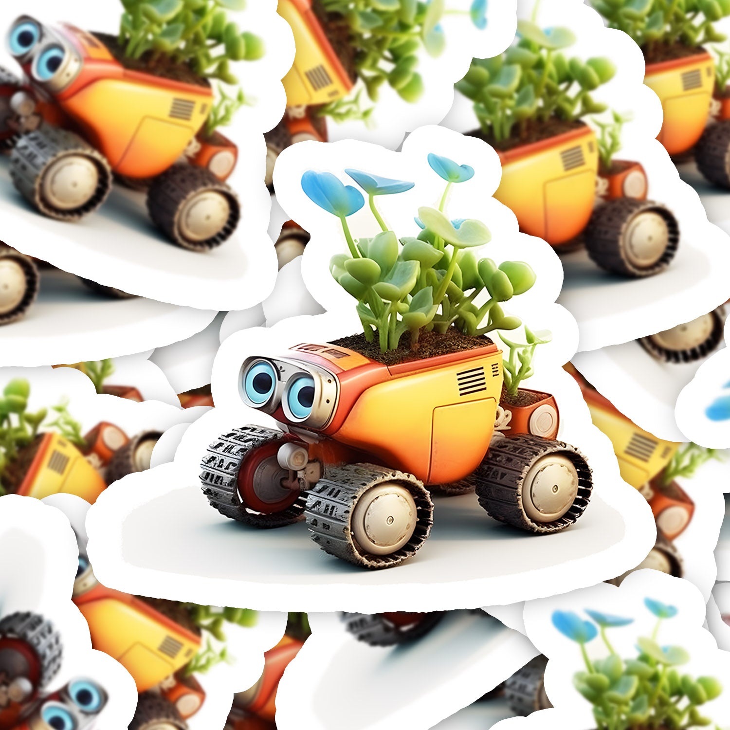 Set 5 bucati, Sticker decorativ, Robot cu senile pentru gradina, Rezistent la apa, NO12018, 6 cm, Multicolor