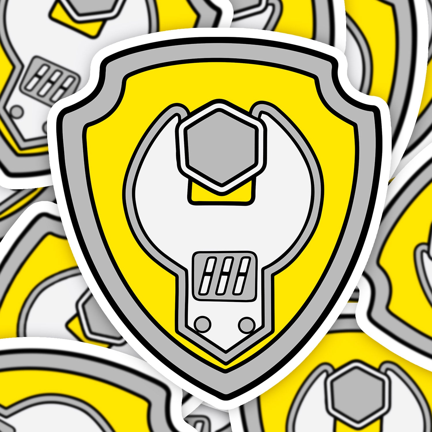 Set 5 bucati, Sticker decorativ, Rubble Badge Paw patrol, Rezistent la apa, NO14638, 6 cm, Multicolor