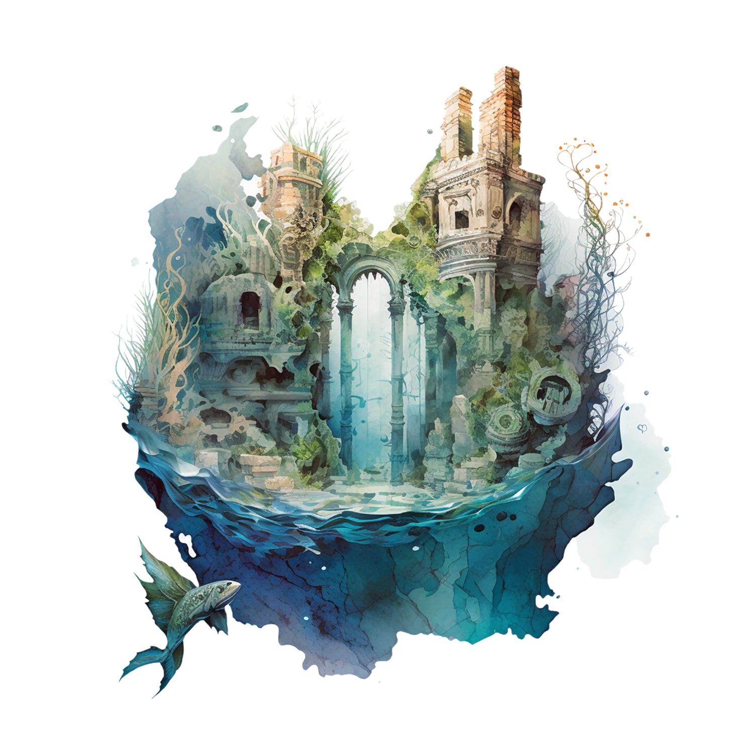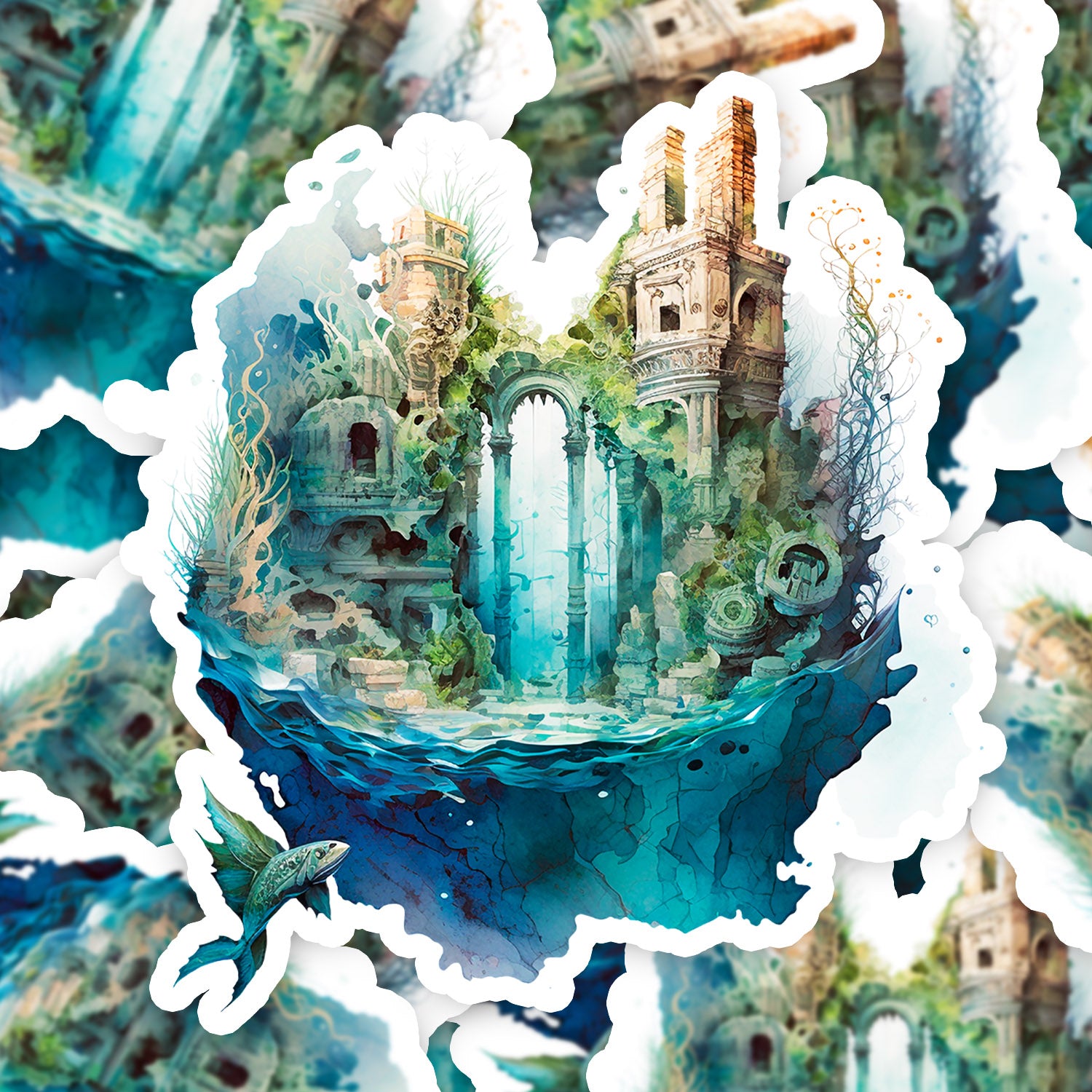 Set 5 bucati, Sticker decorativ, Ruine in ocean, Rezistent la apa, NO10294, 6 cm, Multicolor