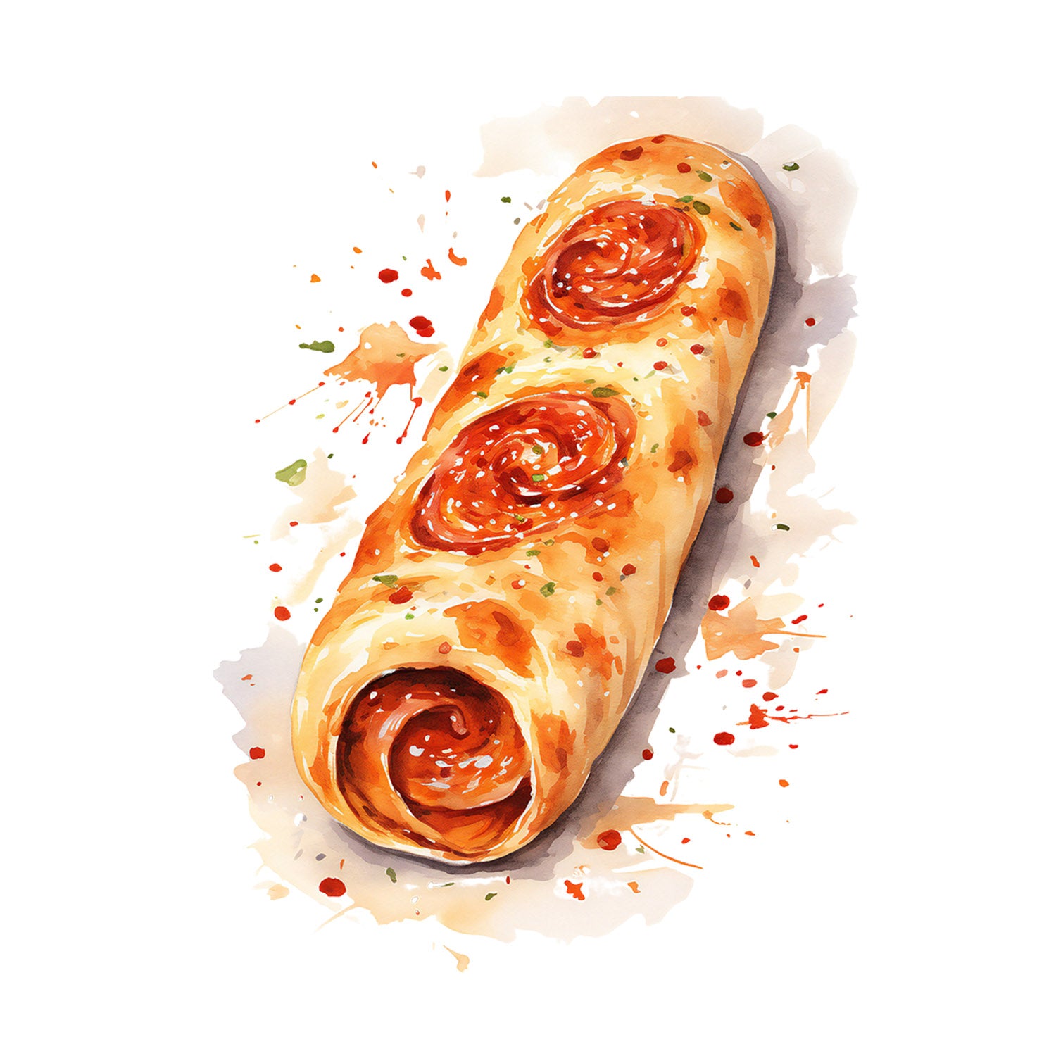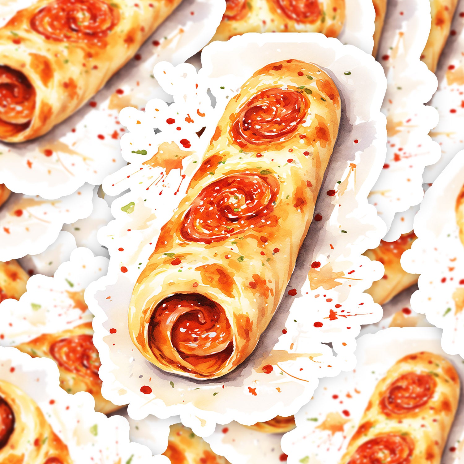 Set 5 bucati, Sticker decorativ, Rulou de paine cu sos de rosii, Rezistent la apa, NO12833, 6 cm, Multicolor