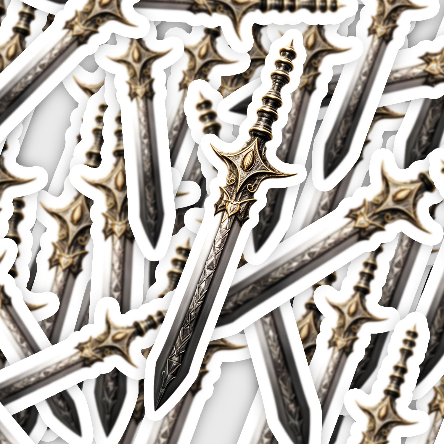 Set 5 bucati, Sticker decorativ, Sabia de argint, Rezistent la apa, NO11645, 6 cm, Multicolor