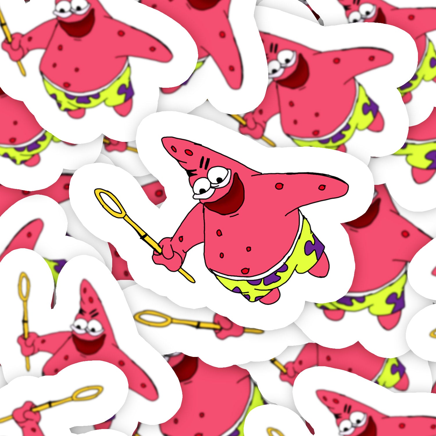 Set 5 bucati, Sticker decorativ, Salbatic Patrick Star Meme, Rezistent la apa, NO12859, 6 cm, Multicolor