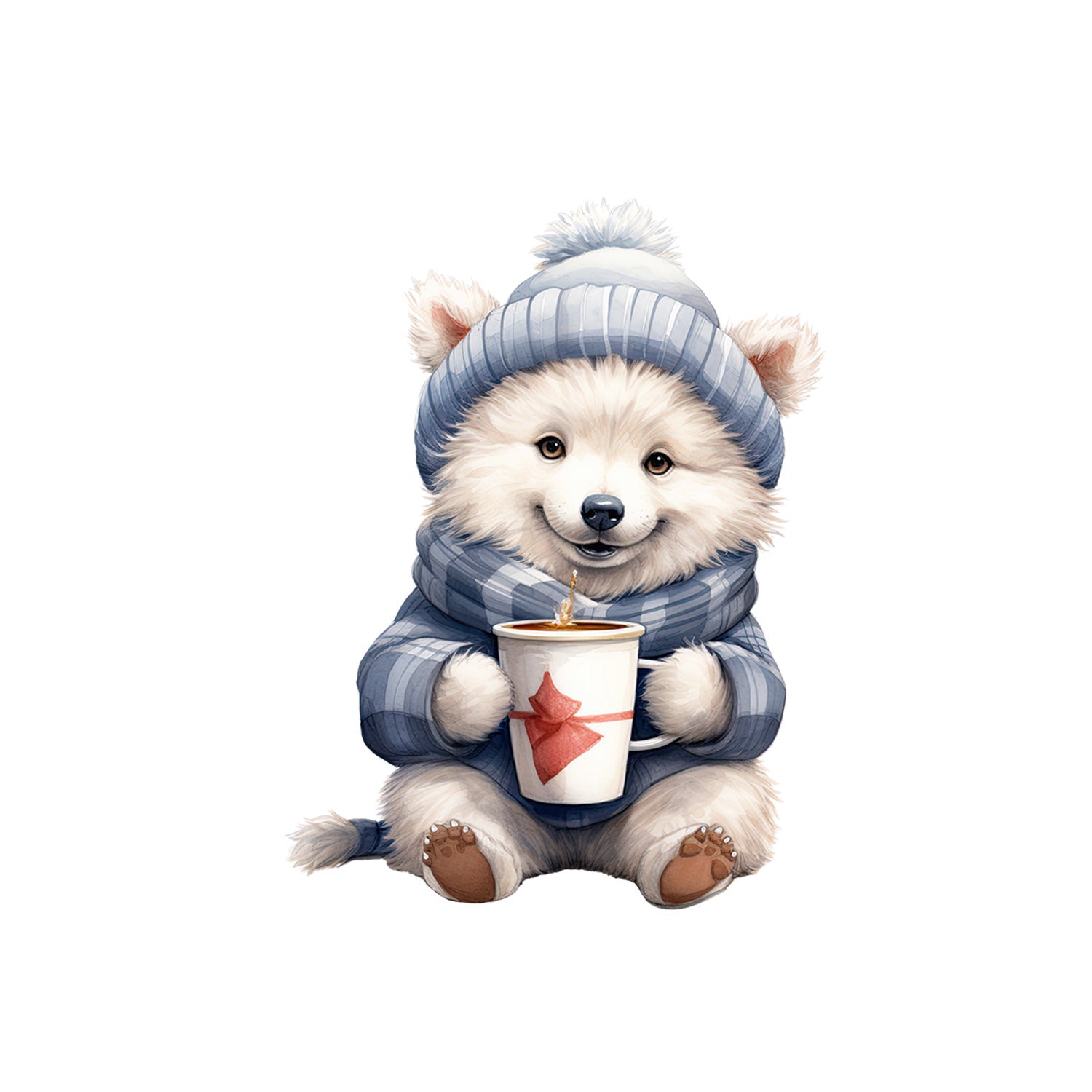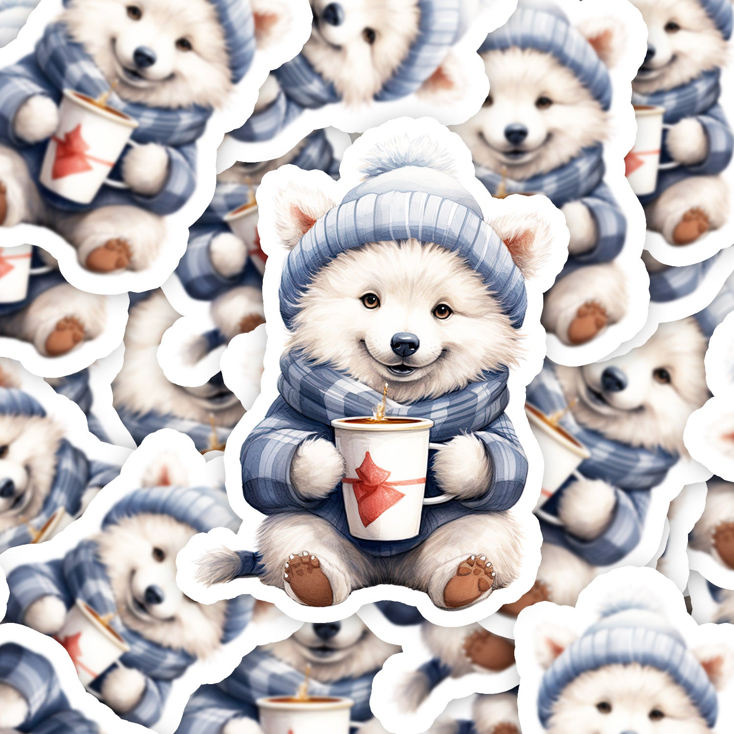 Set 5 bucati, Sticker decorativ, Samoyed bea cafea, Rezistent la apa, NO15085, 6 cm, Multicolor