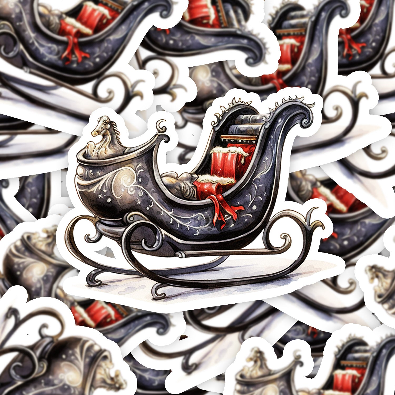 Set 5 bucati, Sticker decorativ, Sanie neagra de craciun, Rezistent la apa, NO11692, 6 cm, Multicolor