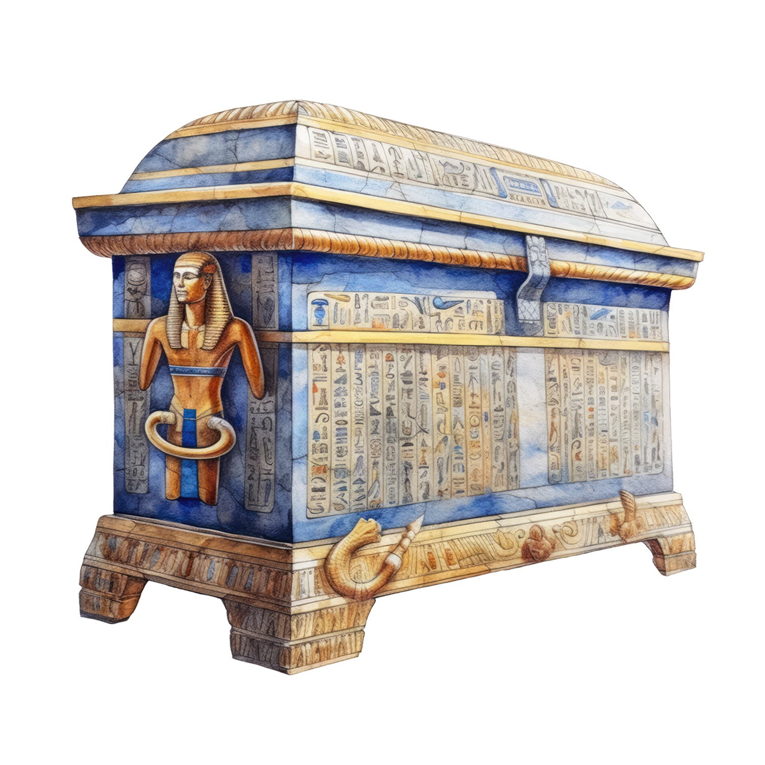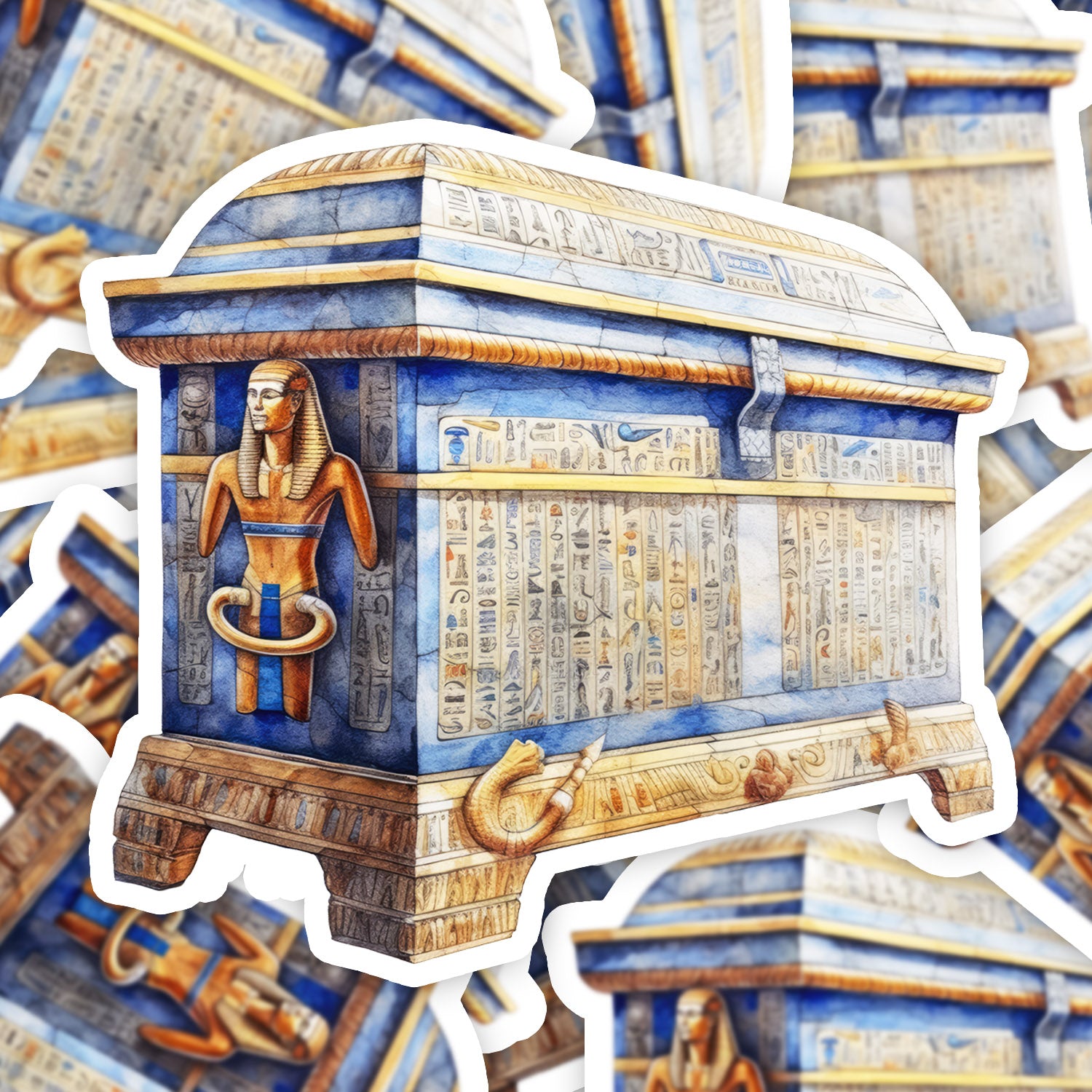 Set 5 bucati, Sticker decorativ, Sarcofag egiptean cu hieroglife, Rezistent la apa, NO15734, 6 cm, Multicolor