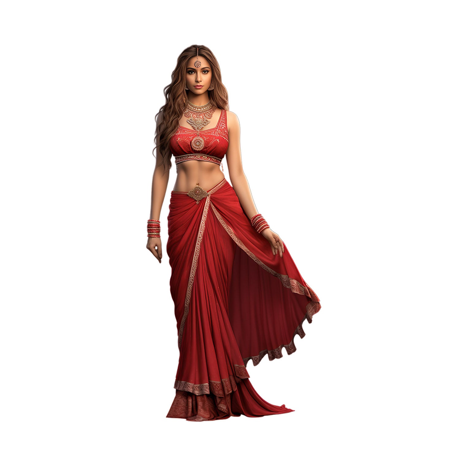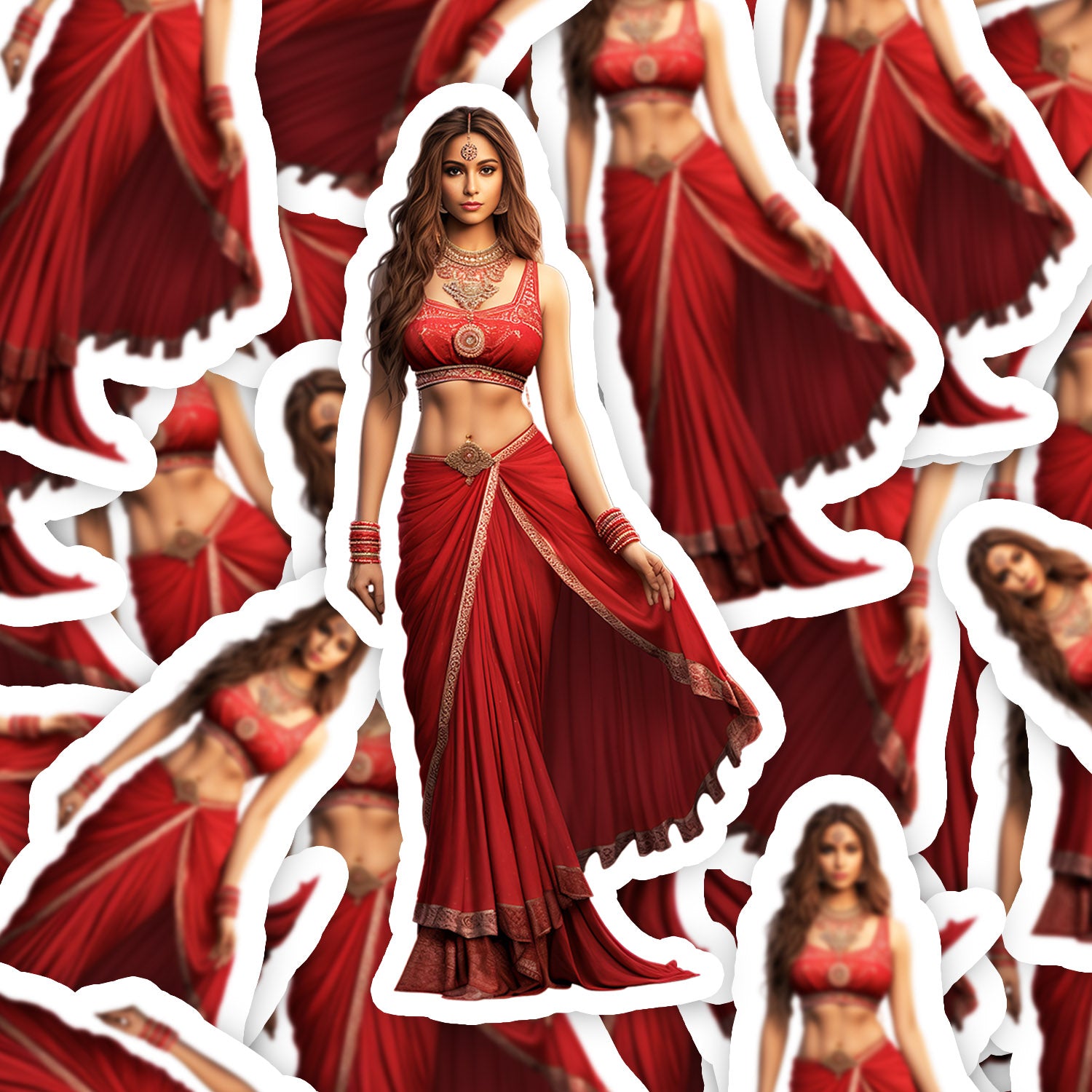 Set 5 bucati, Sticker decorativ, Saree rochie indiana rosie, Rezistent la apa, NO10631, 6 cm, Multicolor
