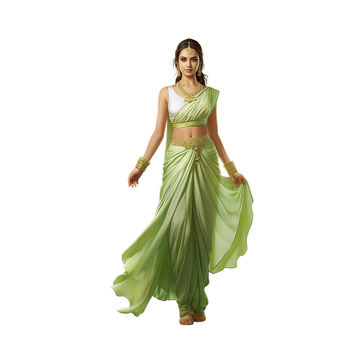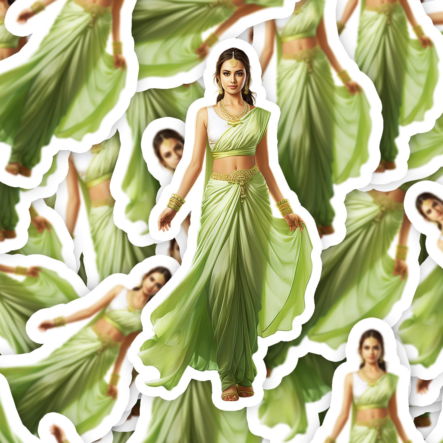 Set 5 bucati, Sticker decorativ, Saree rochie indiana verde, Rezistent la apa, NO10825, 6 cm, Multicolor