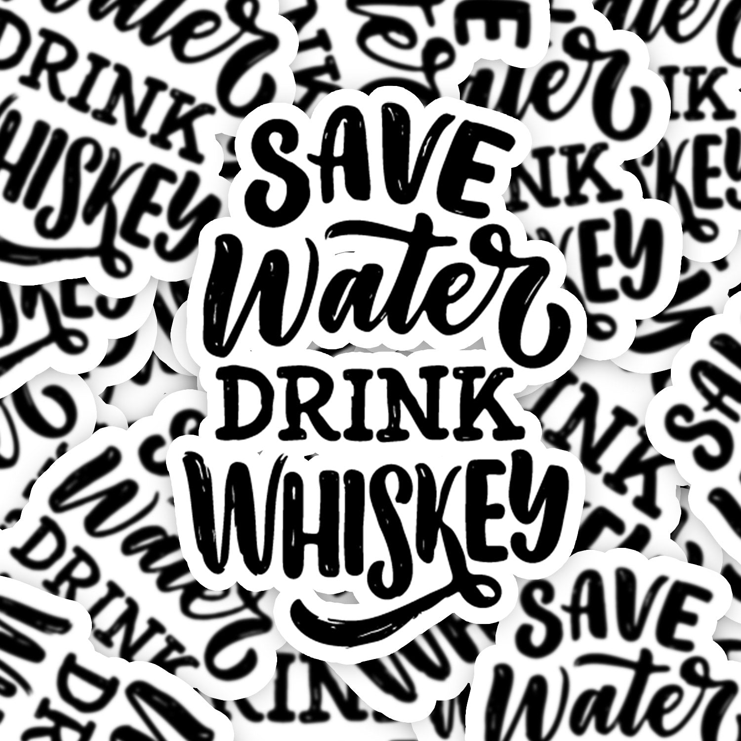Set 5 bucati, Sticker decorativ, Save Water Drink Whiskey, Rezistent la apa, NO16037, 6 cm, Multicolor