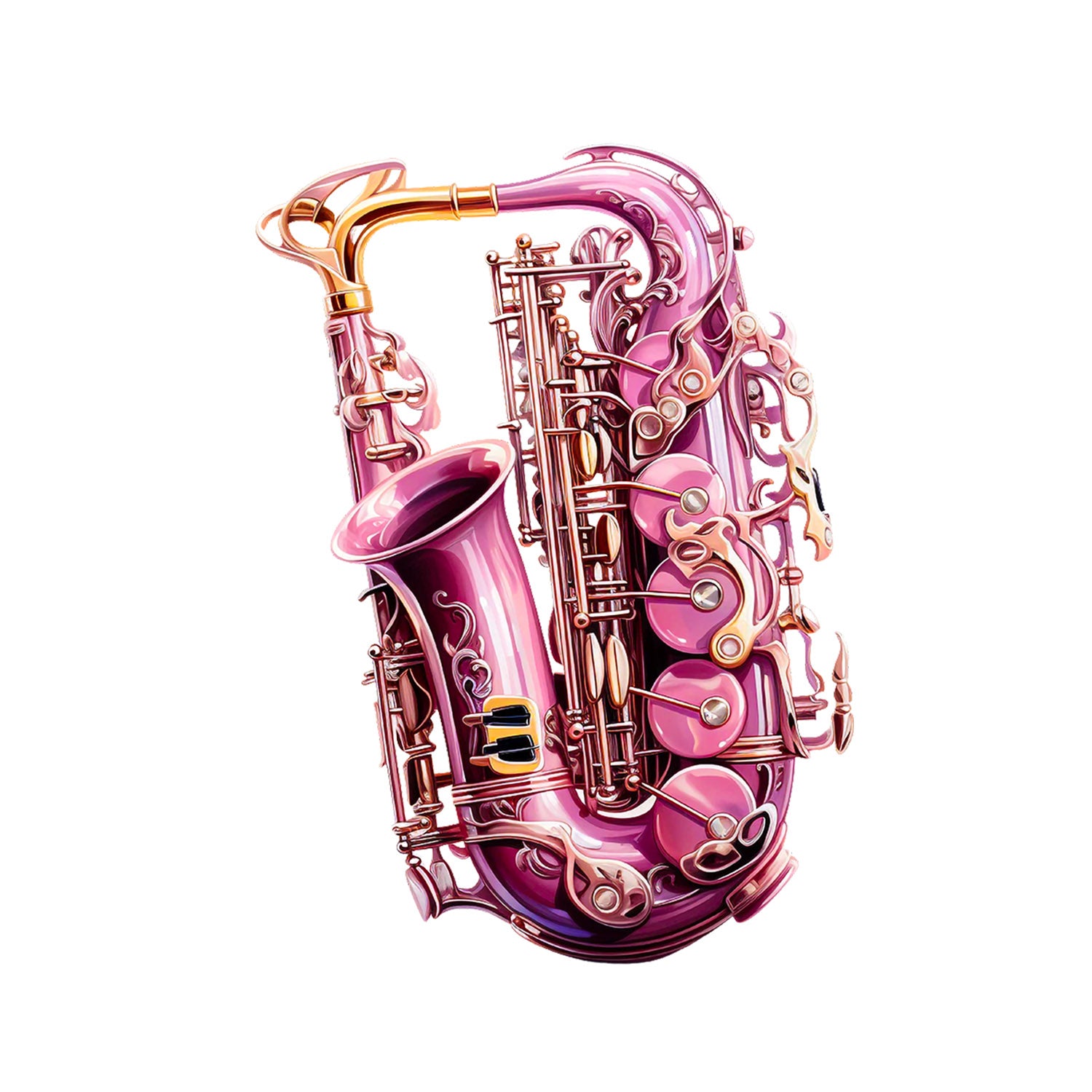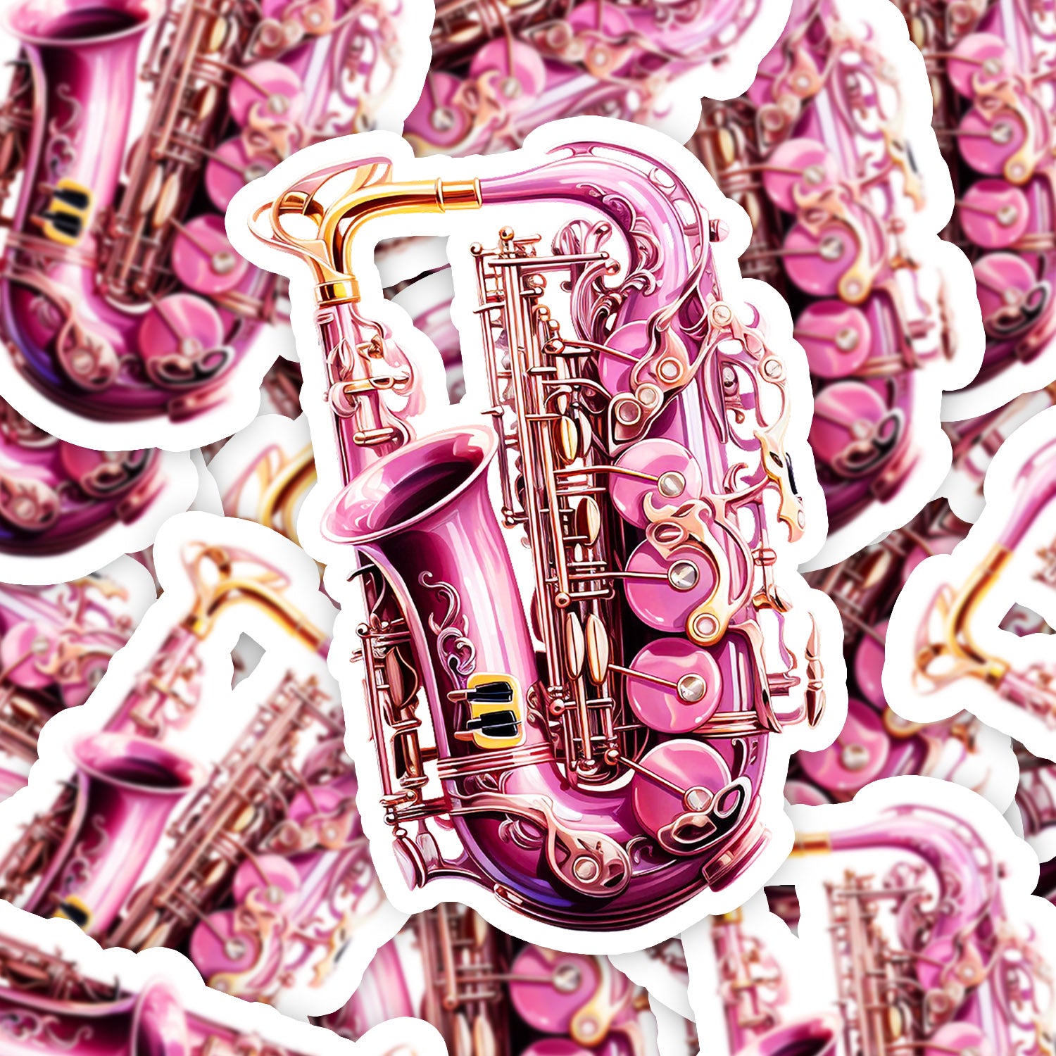 Set 5 bucati, Sticker decorativ, Saxofonul roz, Rezistent la apa, NO15120, 6 cm, Multicolor