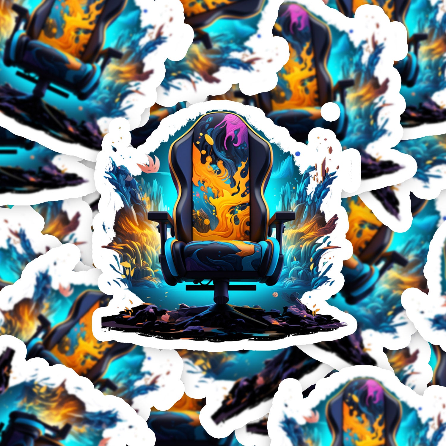 Set 5 bucati, Sticker decorativ, Scaun de birou foc si gheata, Rezistent la apa, NO10993, 6 cm, Multicolor