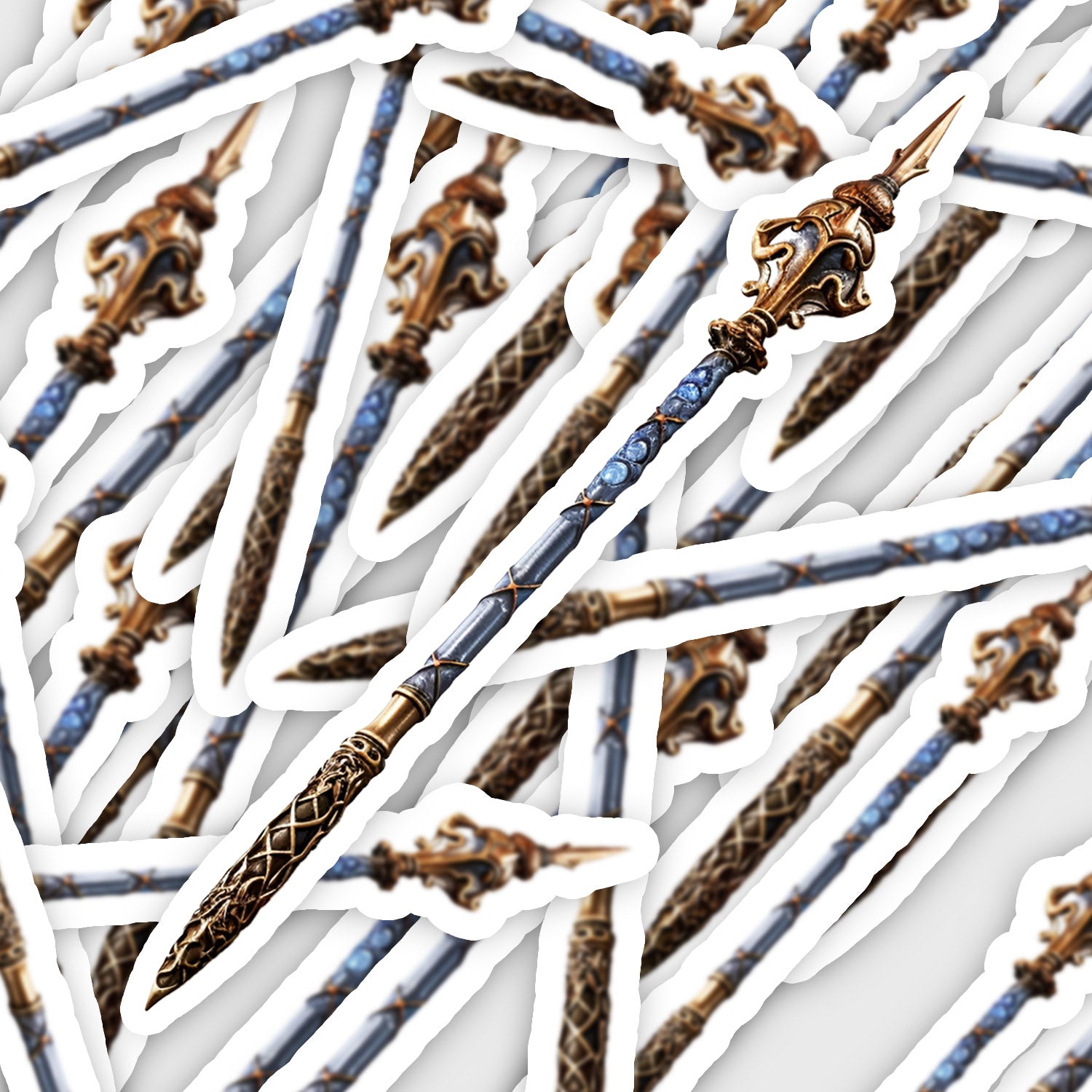 Set 5 bucati, Sticker decorativ, Sceptrul cu pietre albastre, Rezistent la apa, NO14302, 6 cm, Multicolor