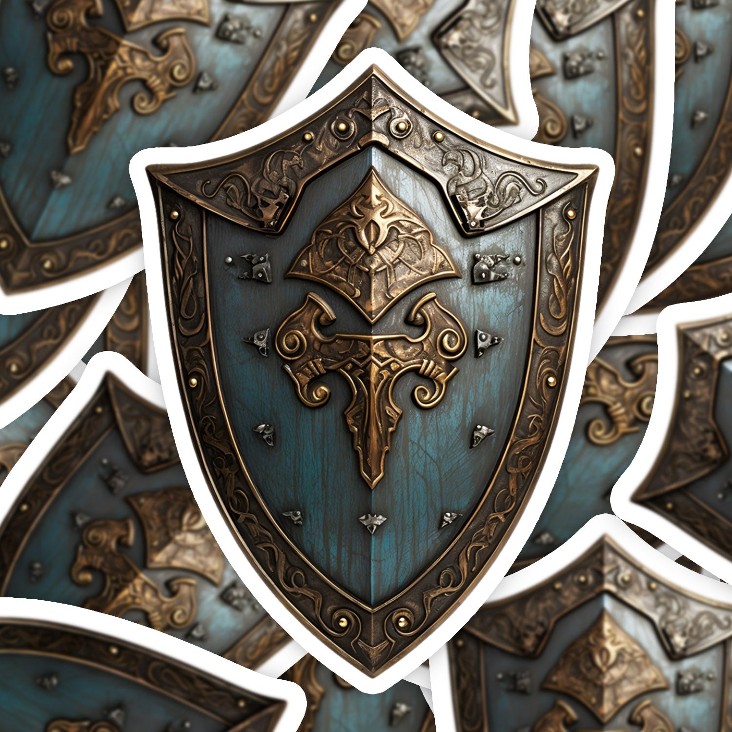 Set 5 bucati, Sticker decorativ, Scut medieval, Rezistent la apa, NO10222, 6 cm, Multicolor