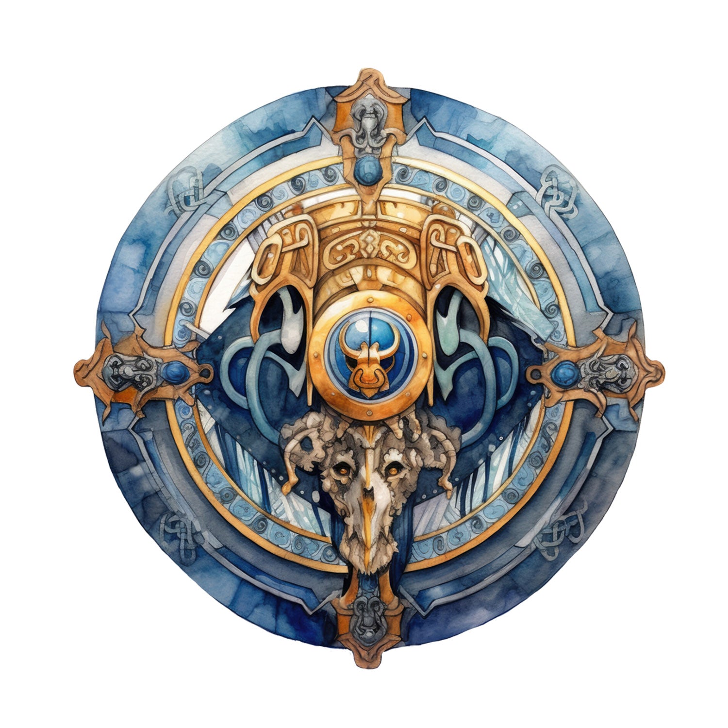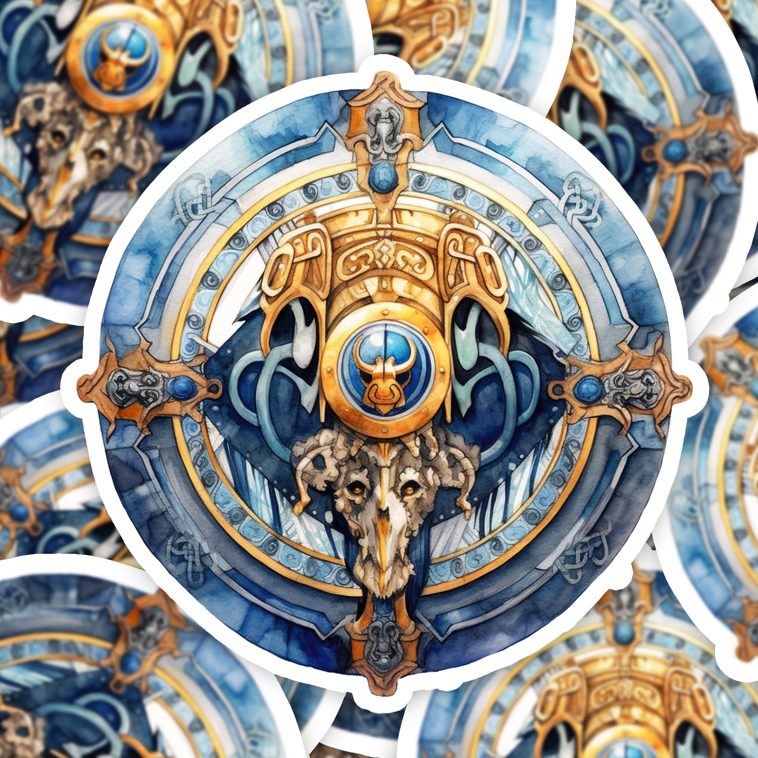 Set 5 bucati, Sticker decorativ, Scut viking albastru, Rezistent la apa, NO10555, 6 cm, Multicolor