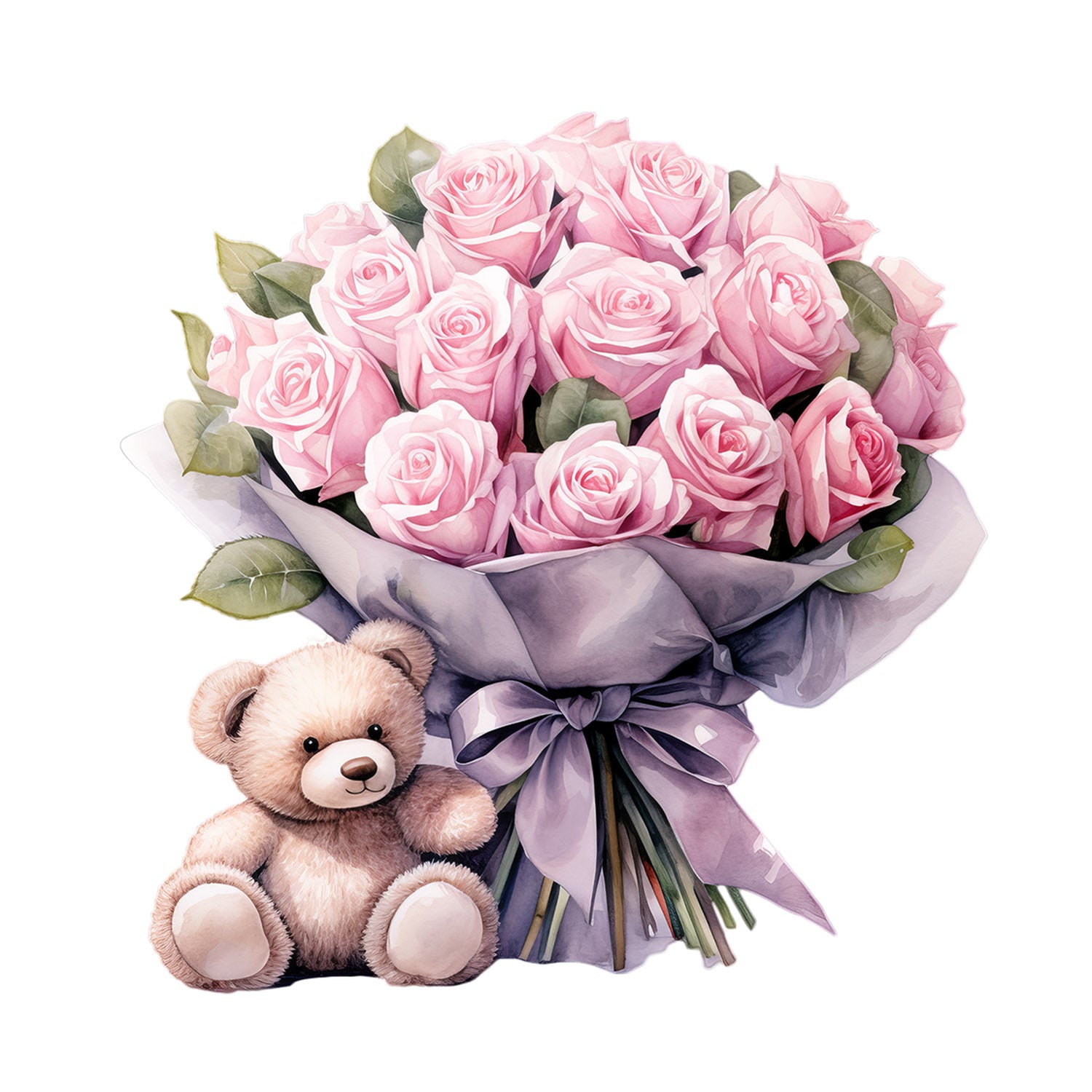 Set 5 bucati, Sticker decorativ, Sfantul Valentin Buchet imens de trandafiri, Rezistent la apa, NO13829, 6 cm, Multicolor