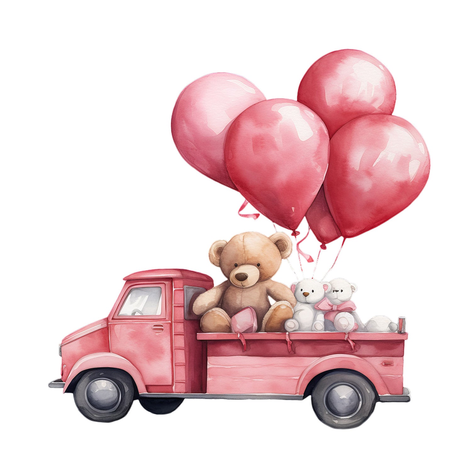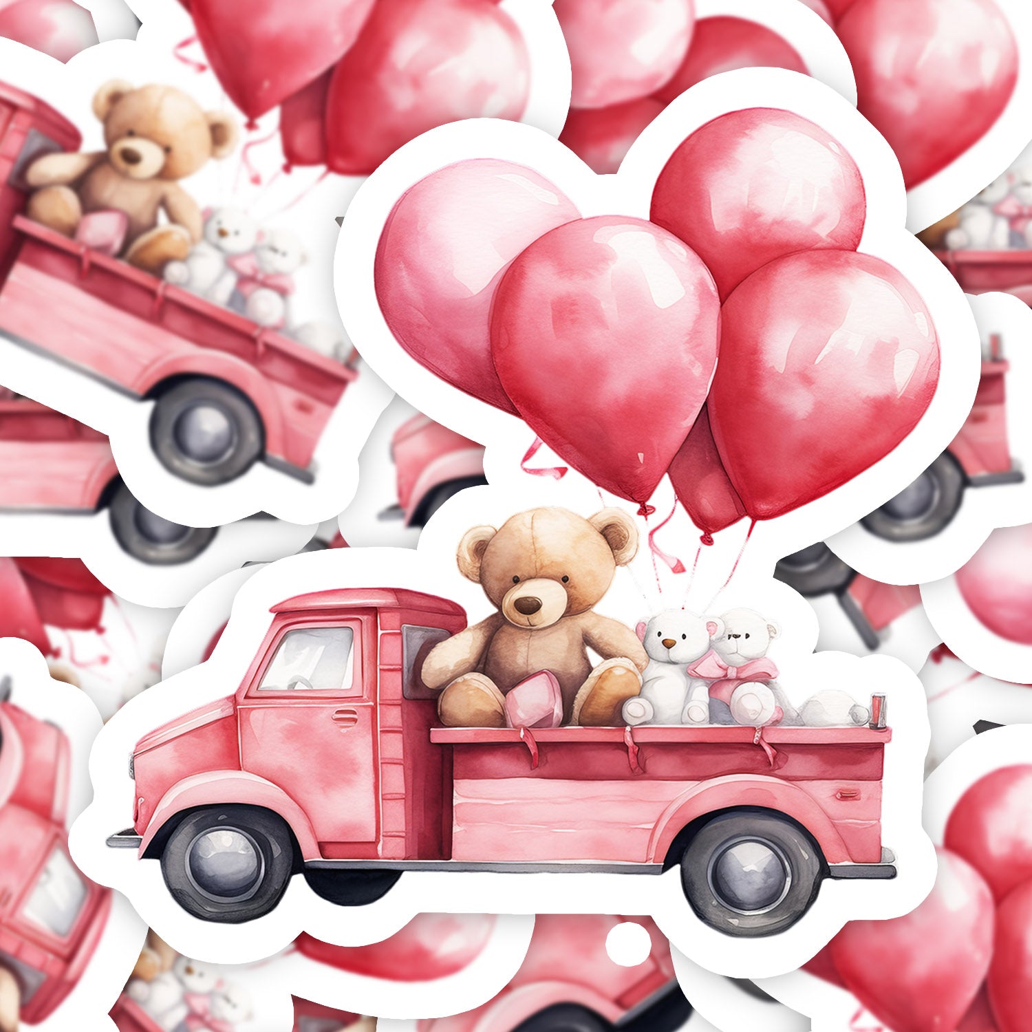 Set 5 bucati, Sticker decorativ, Sfantul Valentin Camion cu jucarii, Rezistent la apa, NO10742, 6 cm, Multicolor