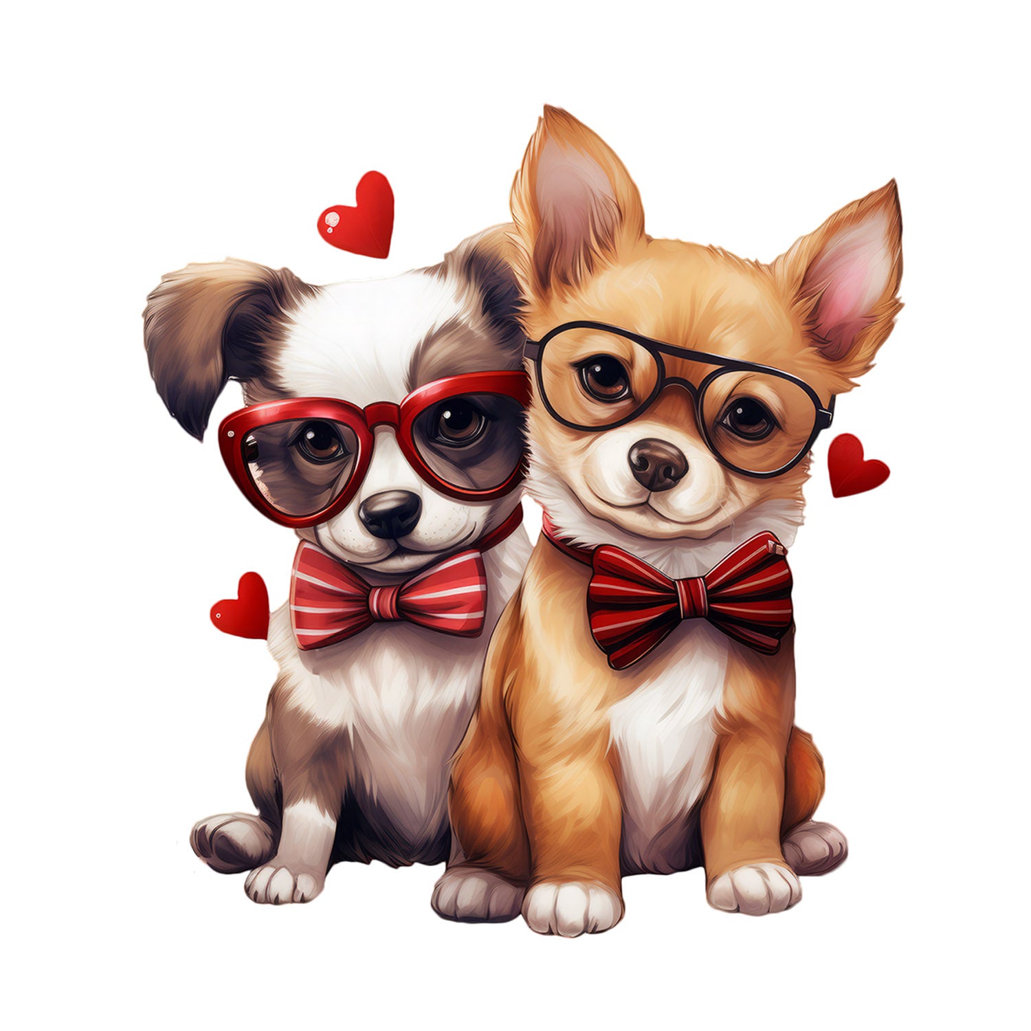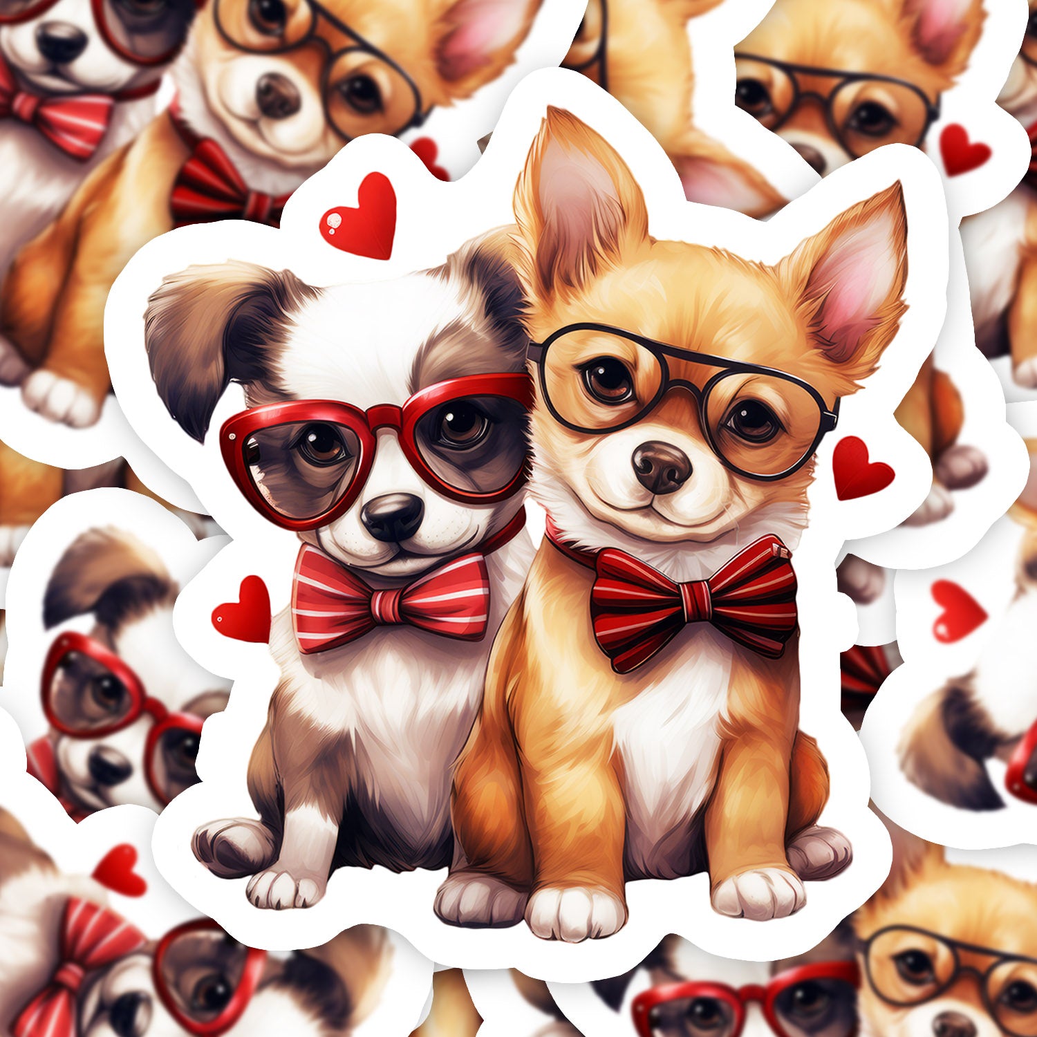 Set 5 bucati, Sticker decorativ, Sfantul Valentin catelusii indragostiti, Rezistent la apa, NO12074, 6 cm, Multicolor