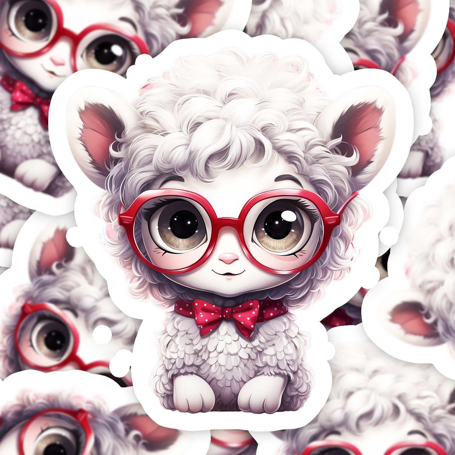 Set 5 bucati, Sticker decorativ, Sfantul Valentin Miel alb, Rezistent la apa, NO11313, 6 cm, Multicolor