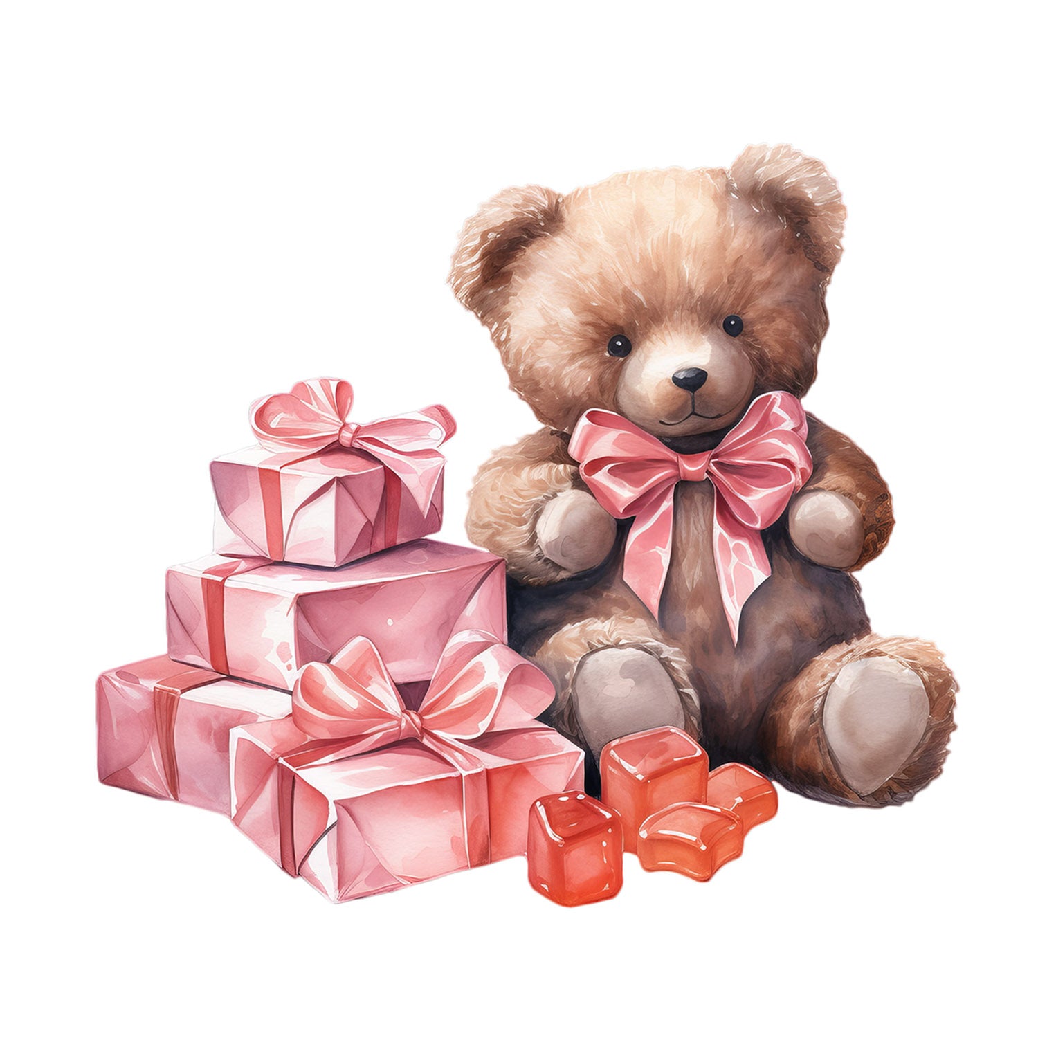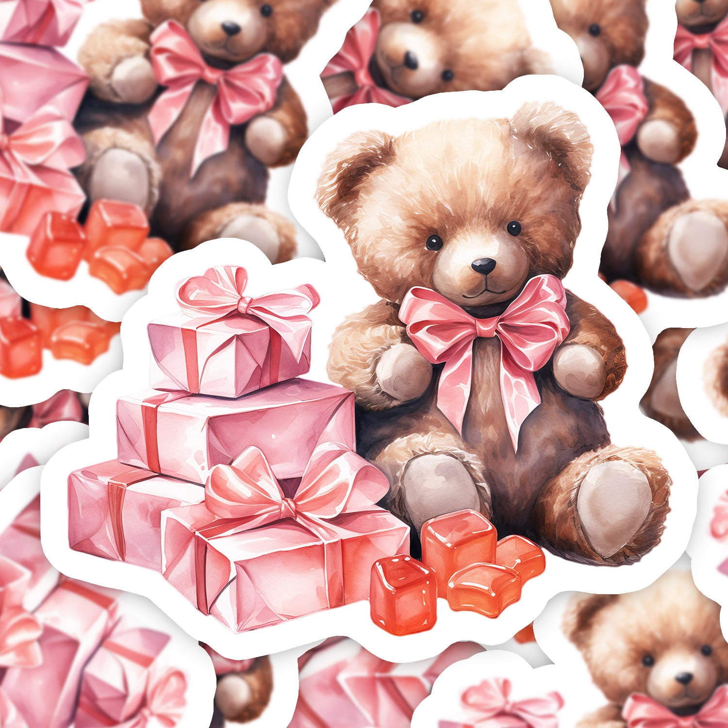 Set 5 bucati, Sticker decorativ, Sfantul Valentin Urs cu cadouri, Rezistent la apa, NO14910, 6 cm, Multicolor