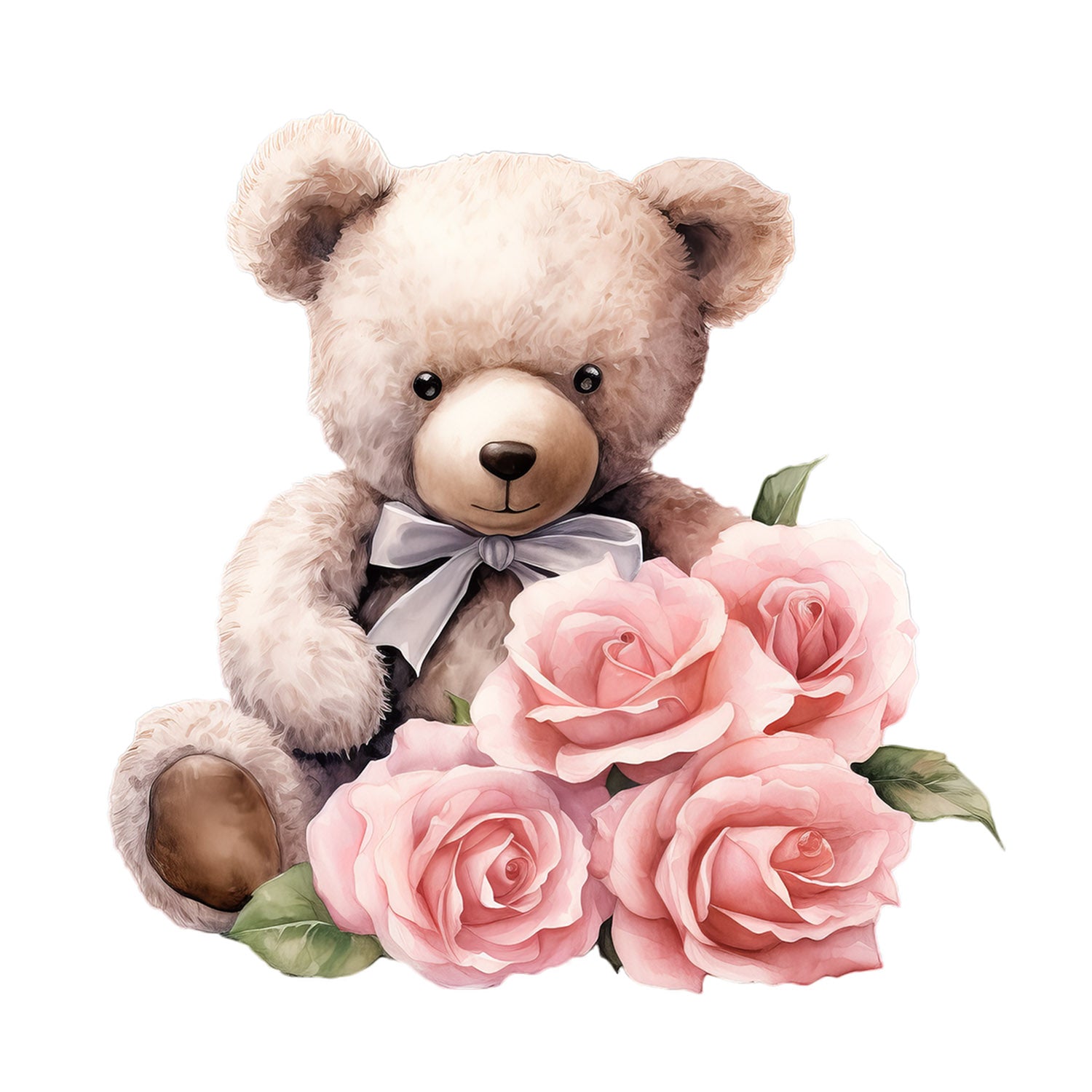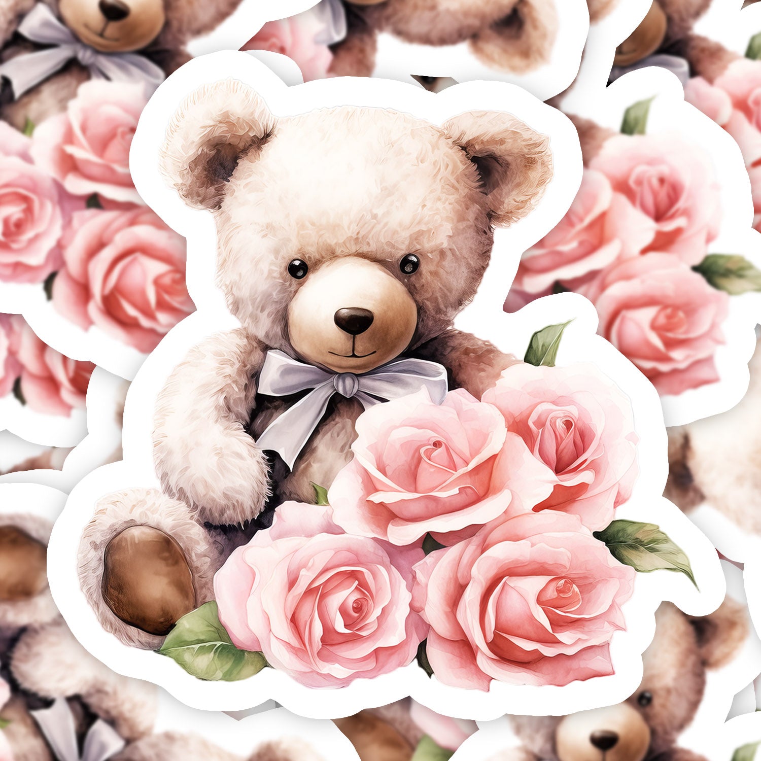 Set 5 bucati, Sticker decorativ, Sfantul Valentin Urs cu trandafiri roz, Rezistent la apa, NO12838, 6 cm, Multicolor