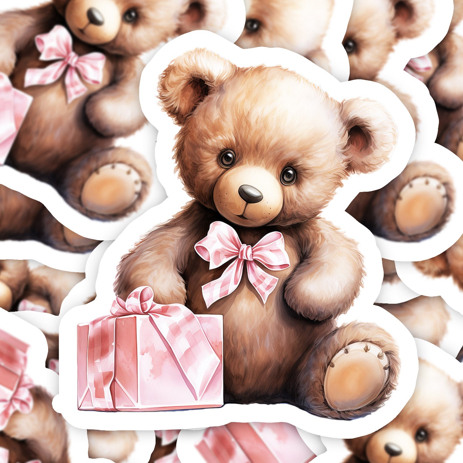 Set 5 bucati, Sticker decorativ, Sfantul Valentin Ursul cu funda roz, Rezistent la apa, NO16175, 6 cm, Multicolor