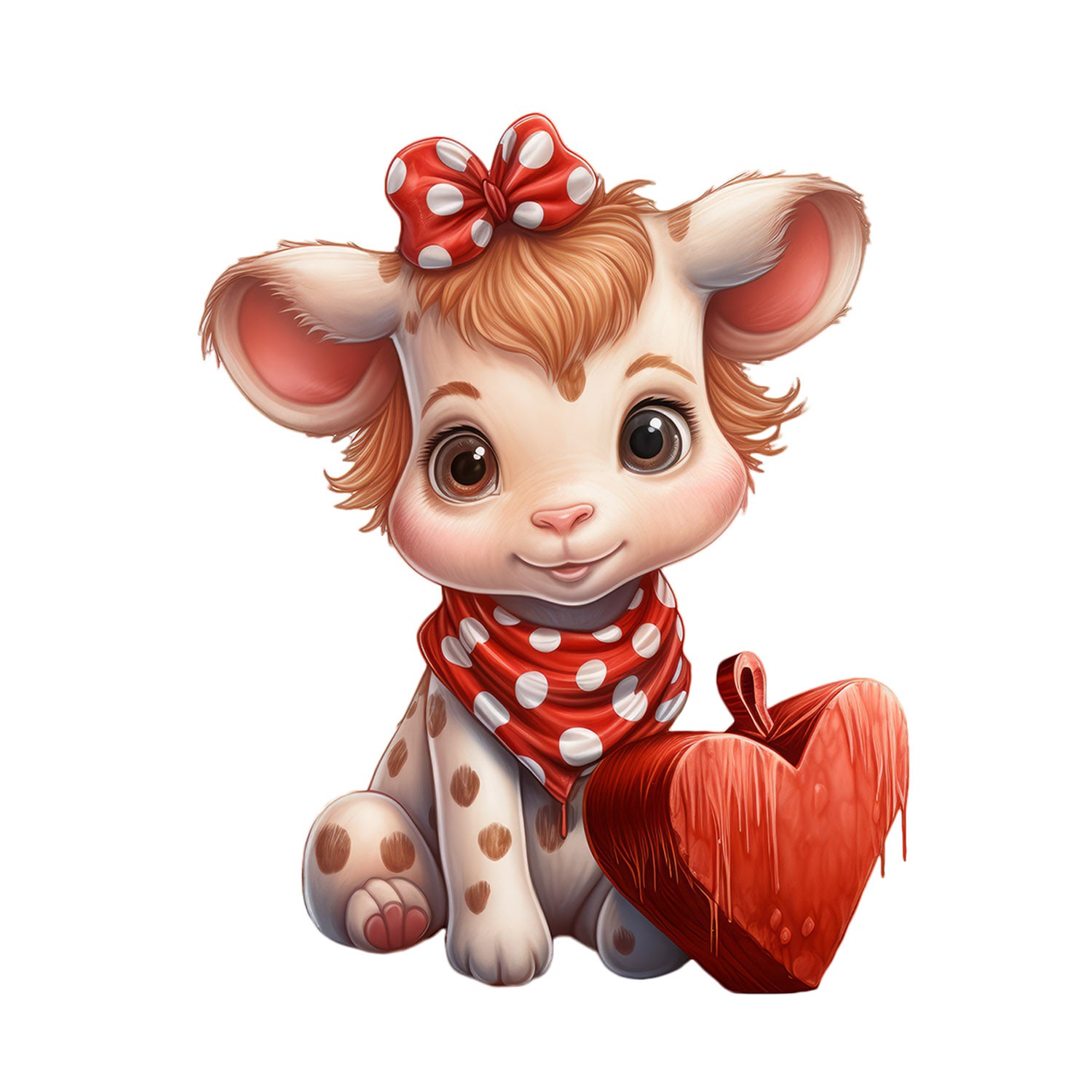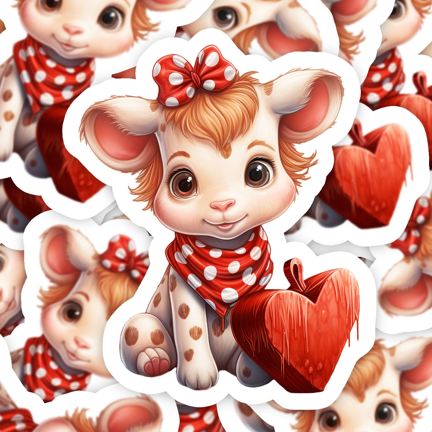 Set 5 bucati, Sticker decorativ, Sfantul Valentin vacuta cu funda in cap, Rezistent la apa, NO11584, 6 cm, Multicolor