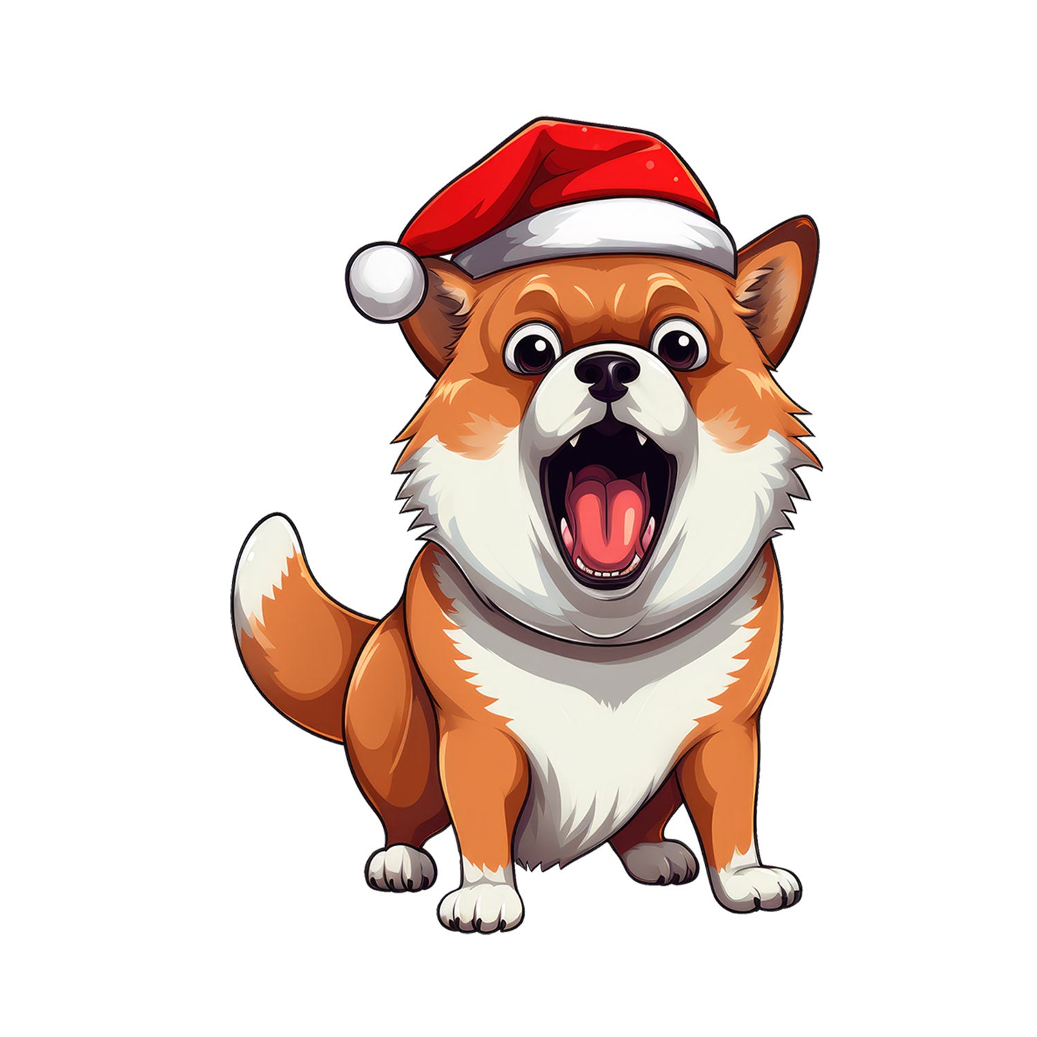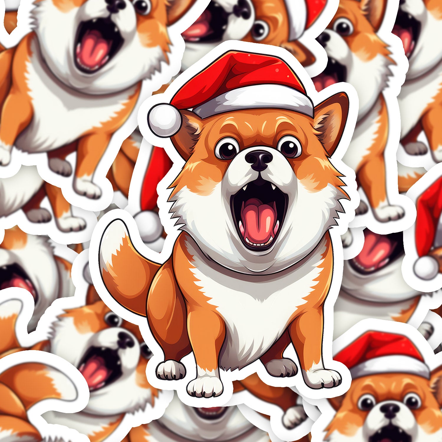 Set 5 bucati, Sticker decorativ, Shiba Inu cu caciula de craciun, Rezistent la apa, NO14097, 6 cm, Multicolor