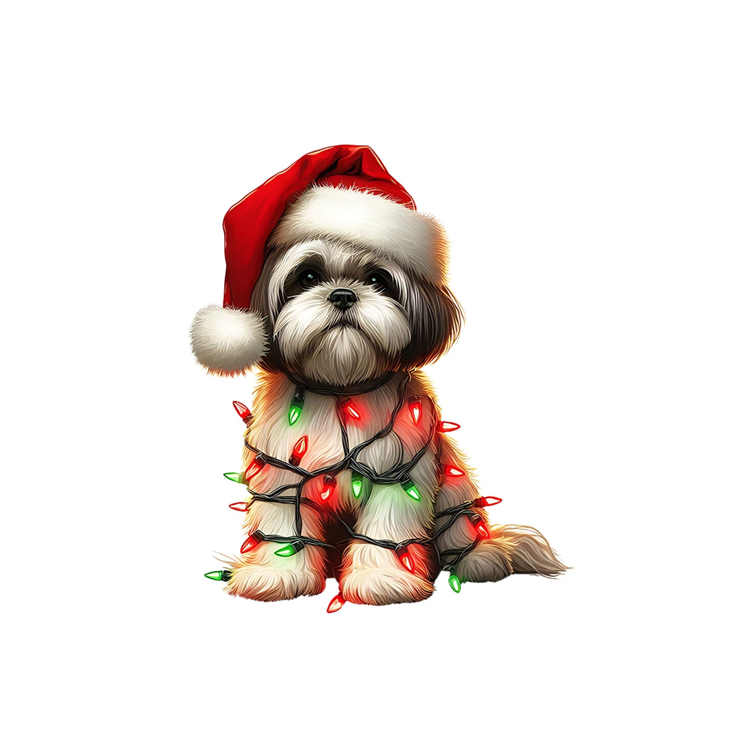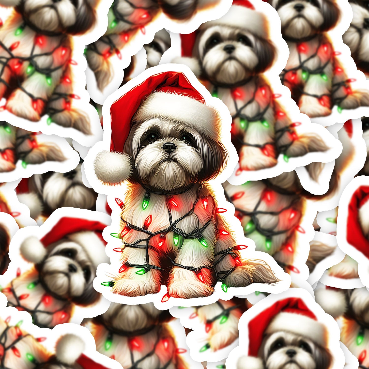 Set 5 bucati, Sticker decorativ, Shih Tzu impodobit de craciun, Rezistent la apa, NO10389, 6 cm, Multicolor