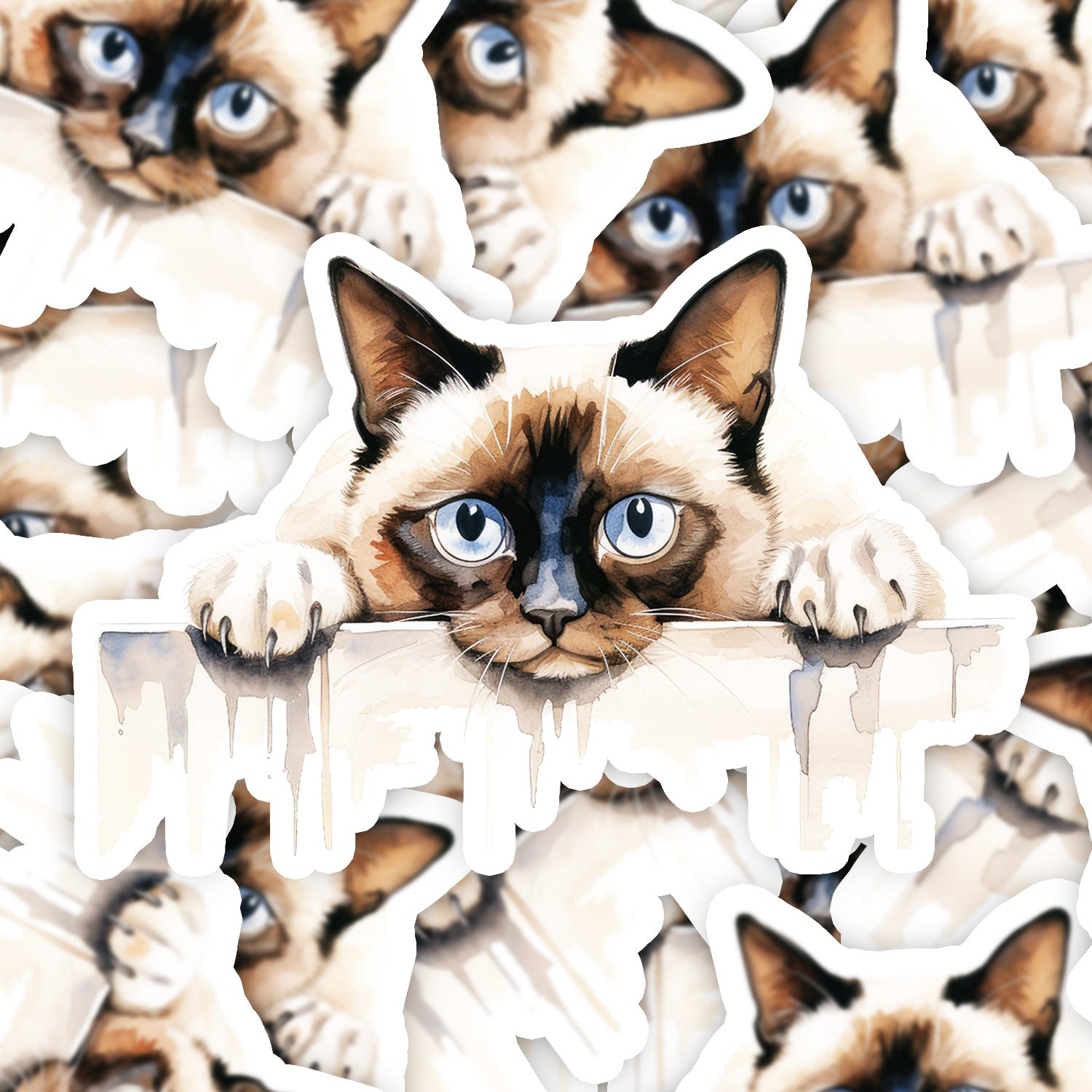 Set 5 bucati, Sticker decorativ, Siameza plictisita, Rezistent la apa, NO11764, 6 cm, Multicolor