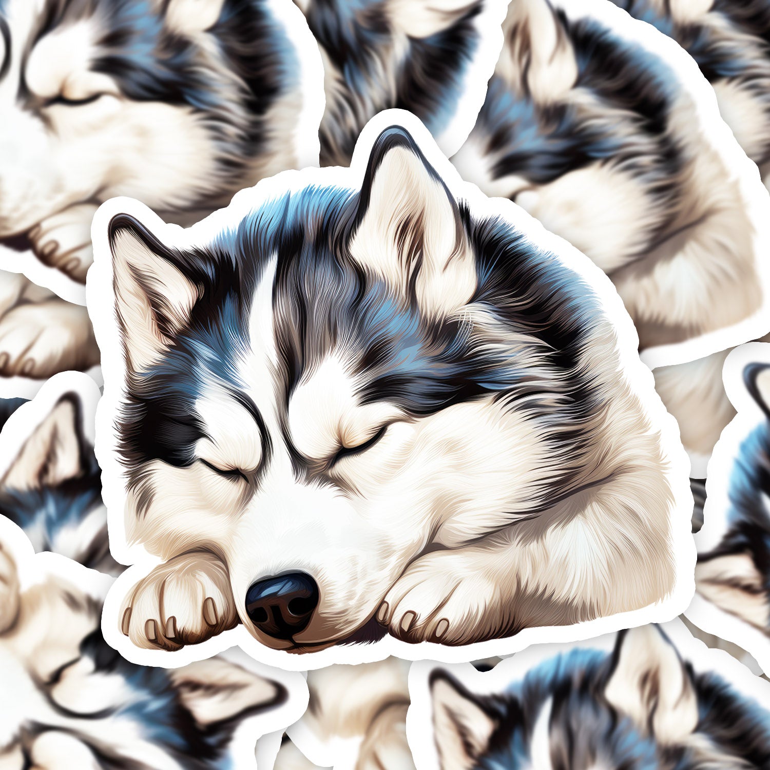 Set 5 bucati, Sticker decorativ, Siberian Husky, Rezistent la apa, NO11266, 6 cm, Multicolor