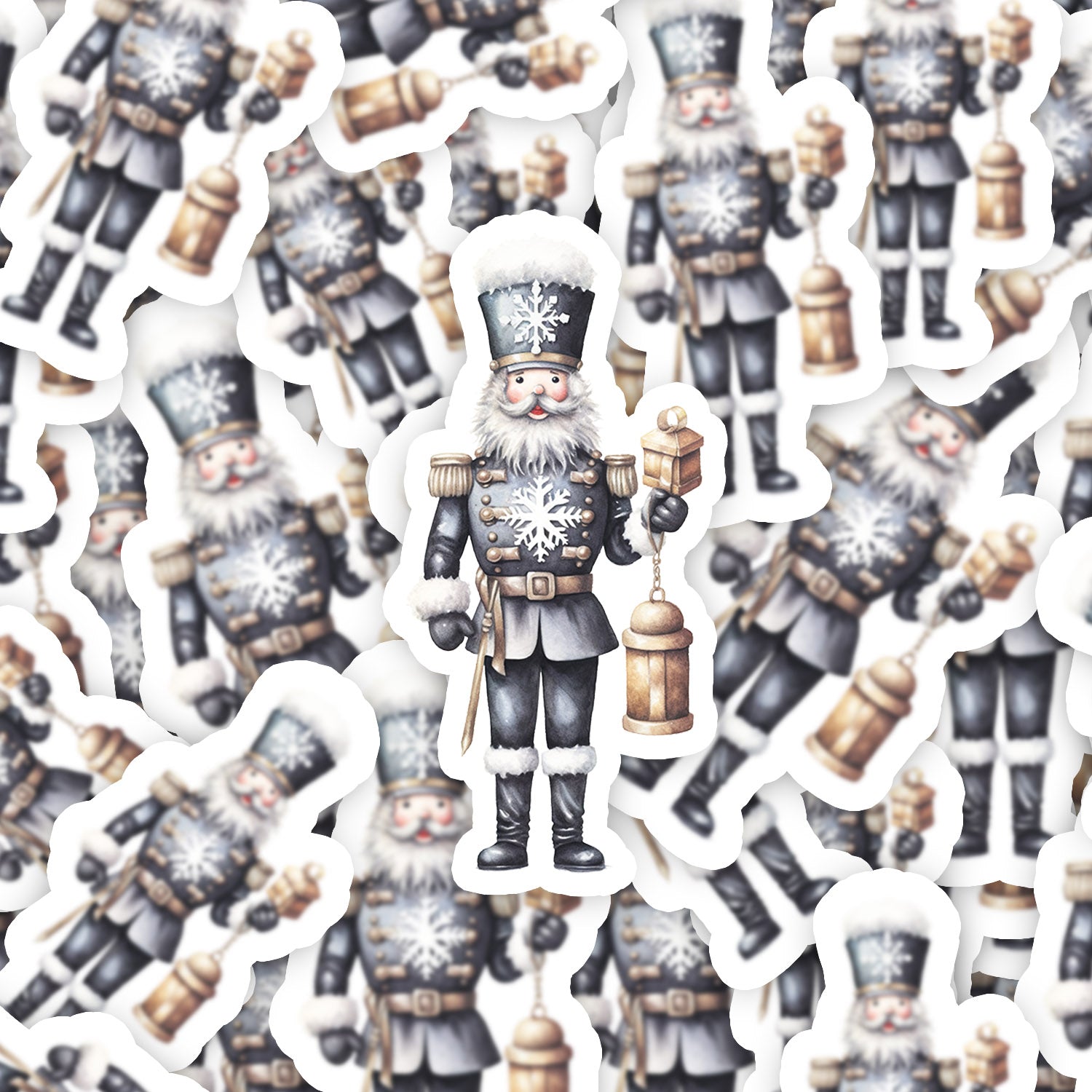 Set 5 bucati, Sticker decorativ, Soldatel de craciun cu felinar, Rezistent la apa, NO15871, 6 cm, Multicolor