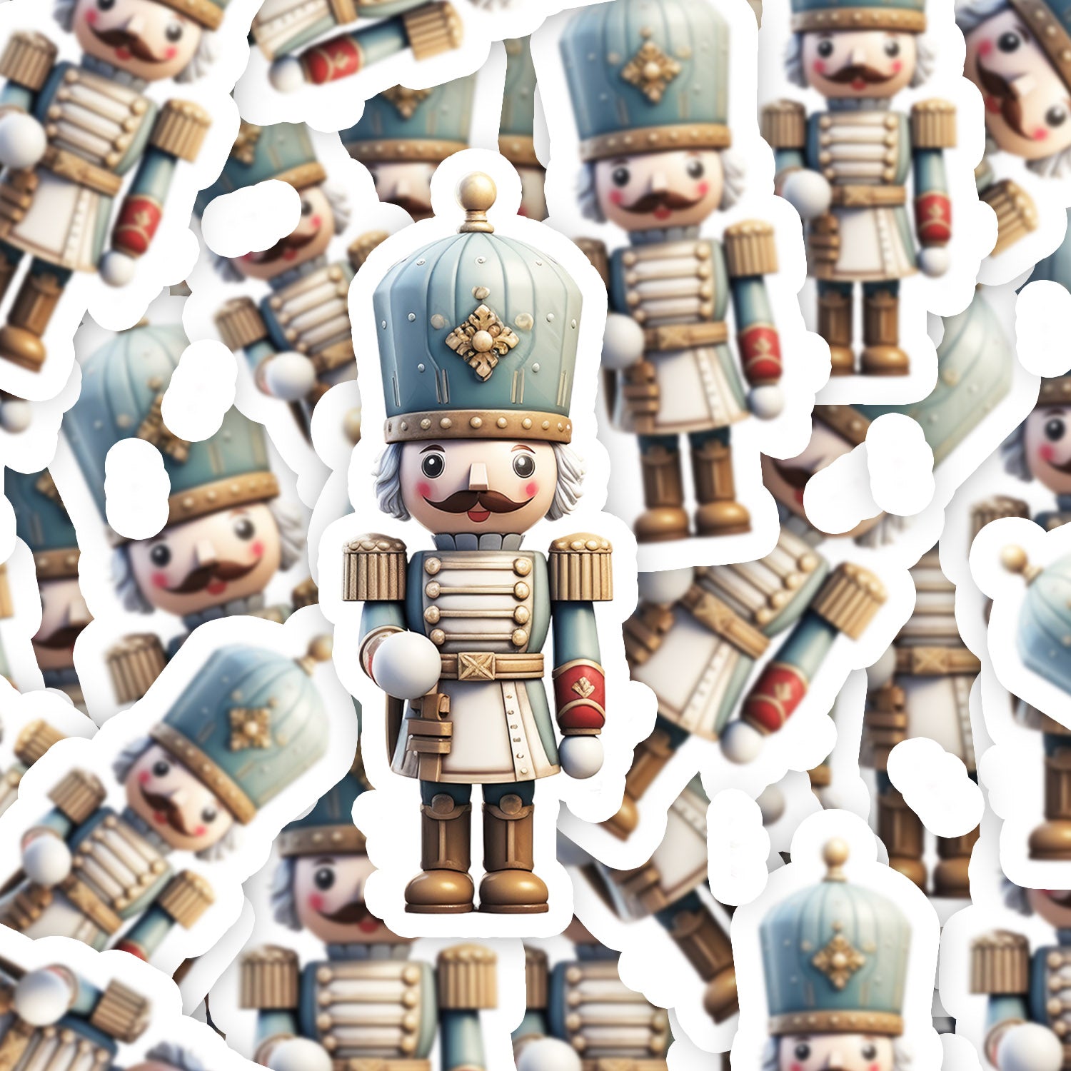 Set 5 bucati, Sticker decorativ, Soldatul de craciun cu mustata, Rezistent la apa, NO11615, 6 cm, Multicolor