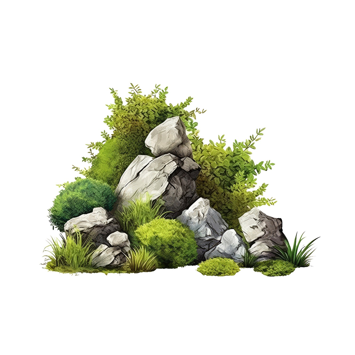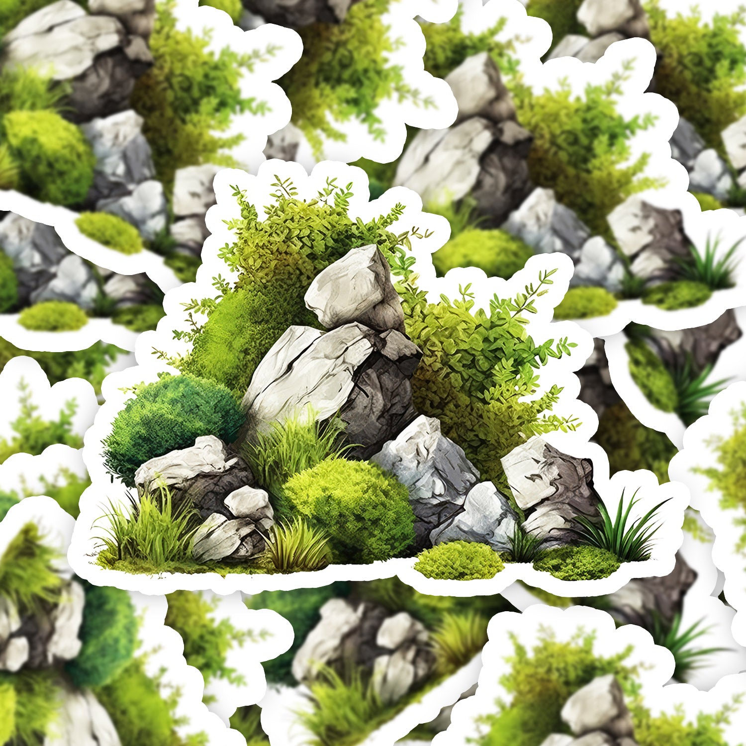 Set 5 bucati, Sticker decorativ, Stanci si arbusti verzi, Rezistent la apa, NO16066, 6 cm, Multicolor