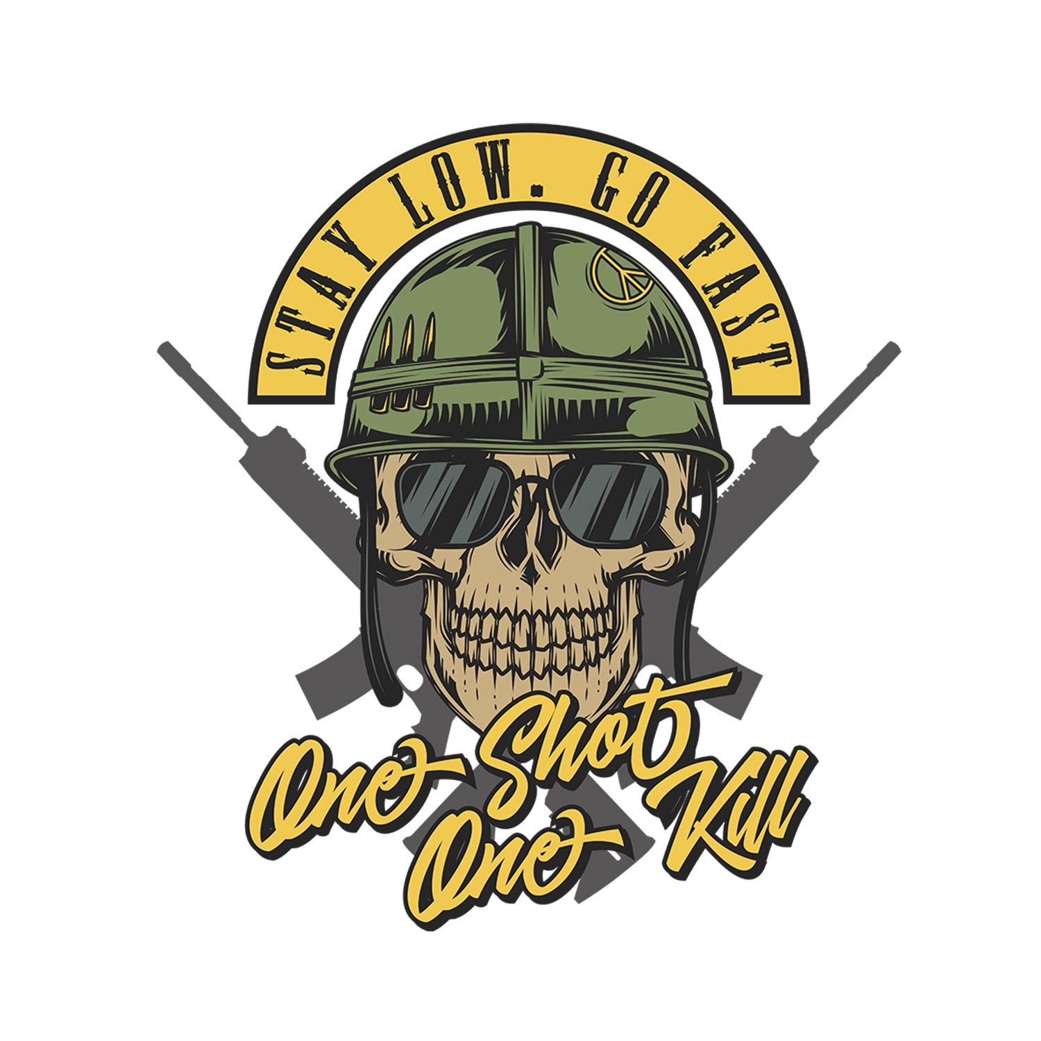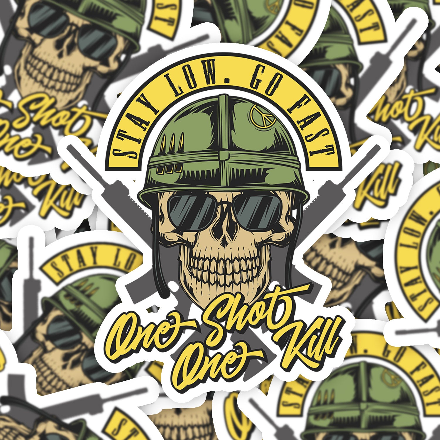 Set 5 bucati, Sticker decorativ, Stay low go fast One shot one kill, Rezistent la apa, NO14440, 6 cm, Multicolor