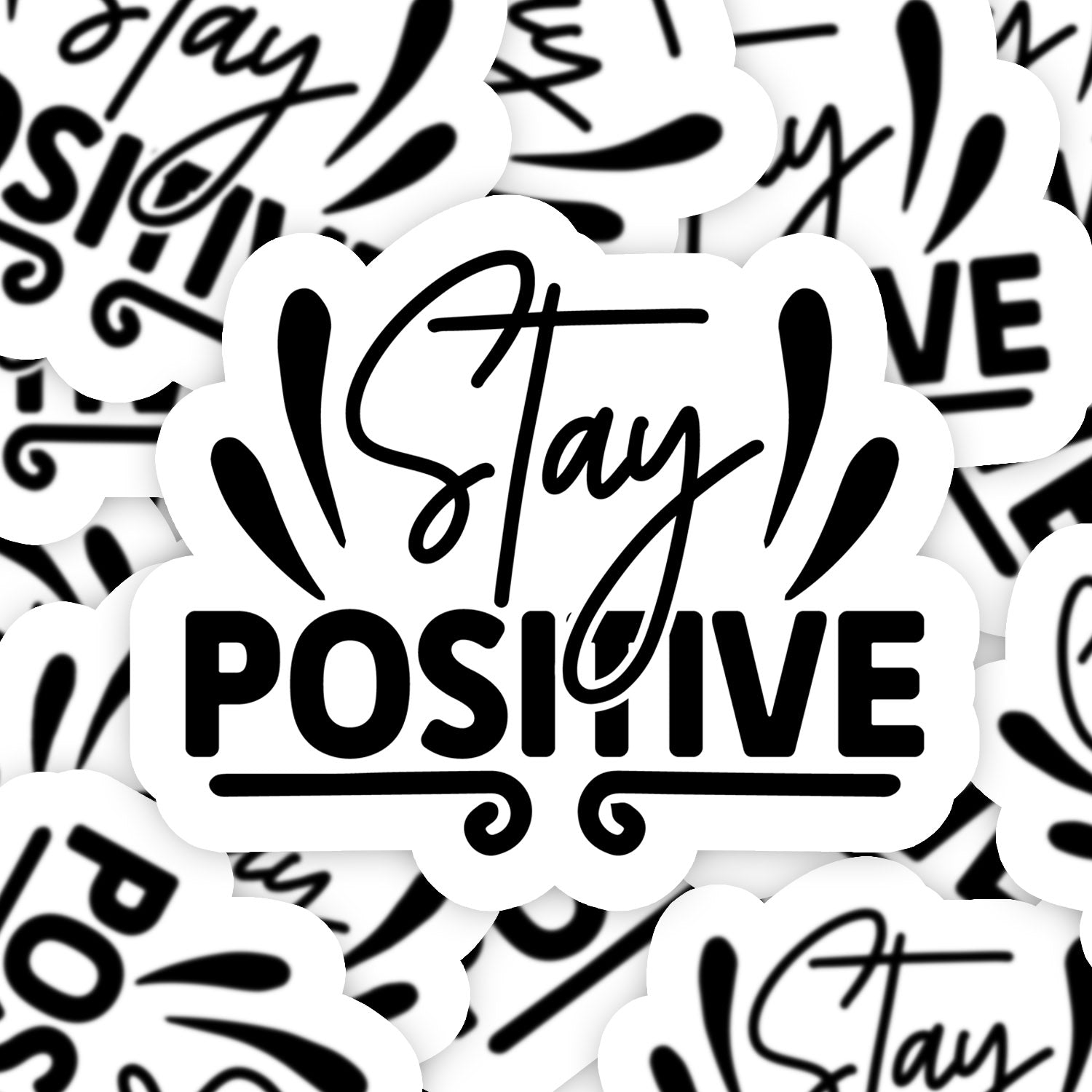 Set 5 bucati, Sticker decorativ, Stay positive logo design, Rezistent la apa, NO13015, 6 cm, Multicolor