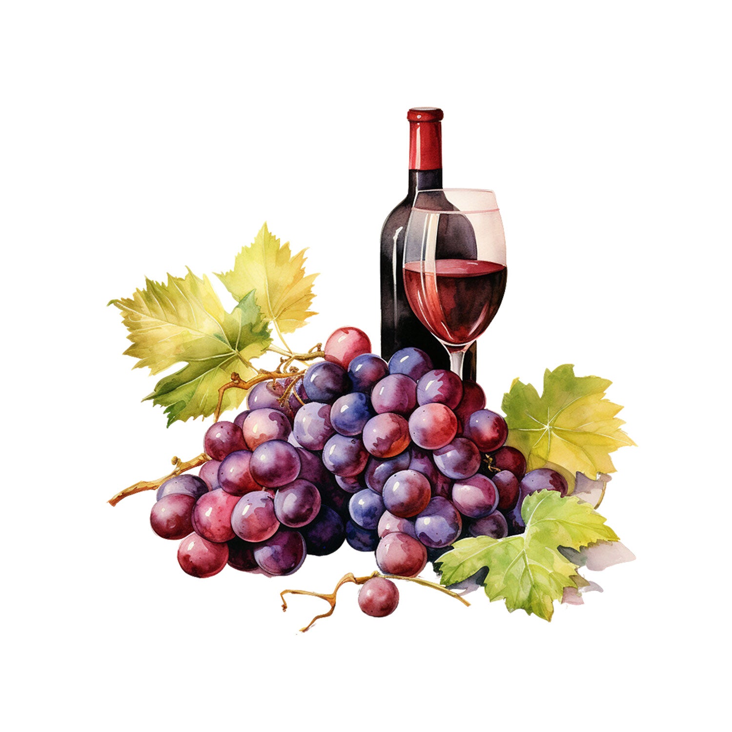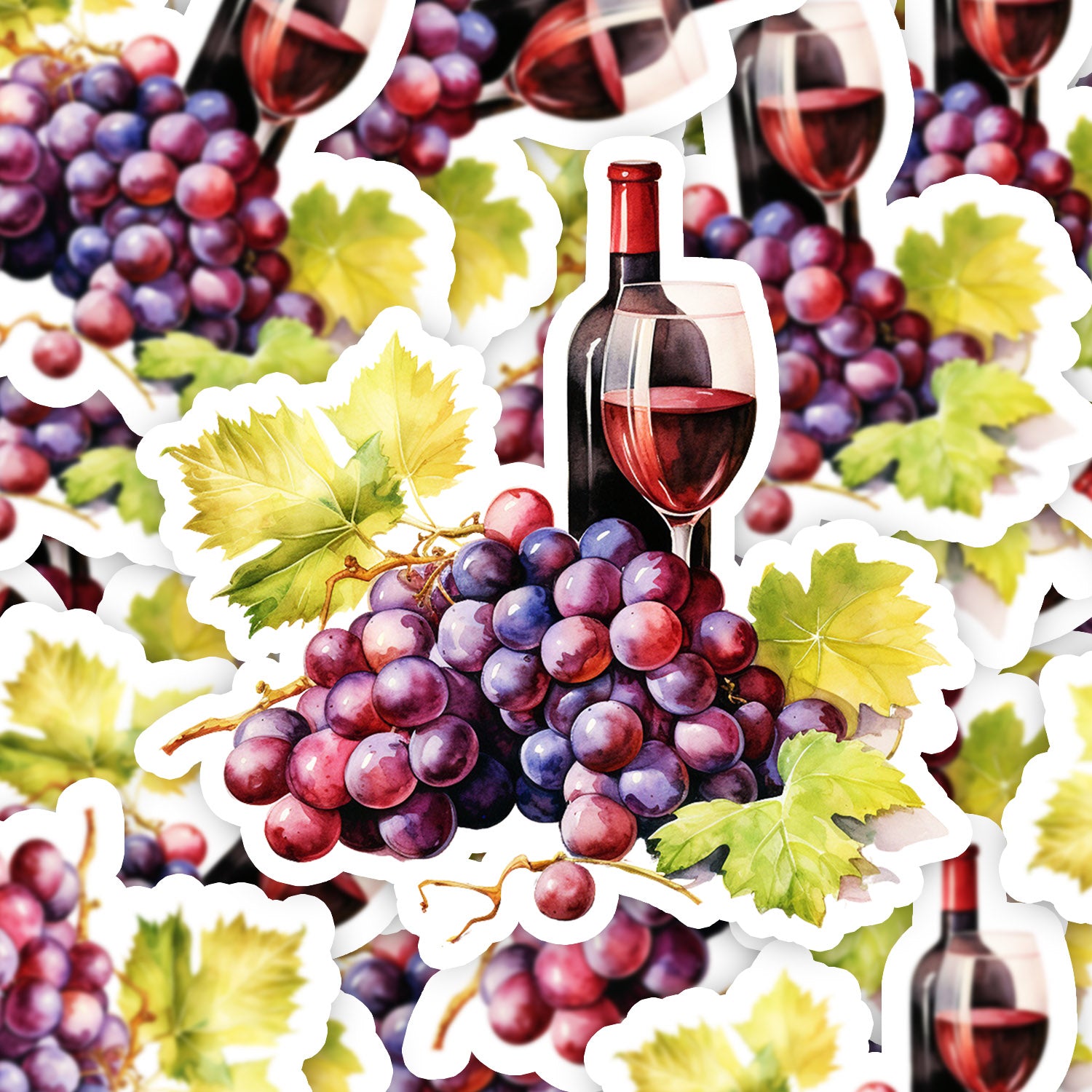 Set 5 bucati, Sticker decorativ, Sticla cu vin rosu pahar si strugure, Rezistent la apa, NO14082, 6 cm, Multicolor
