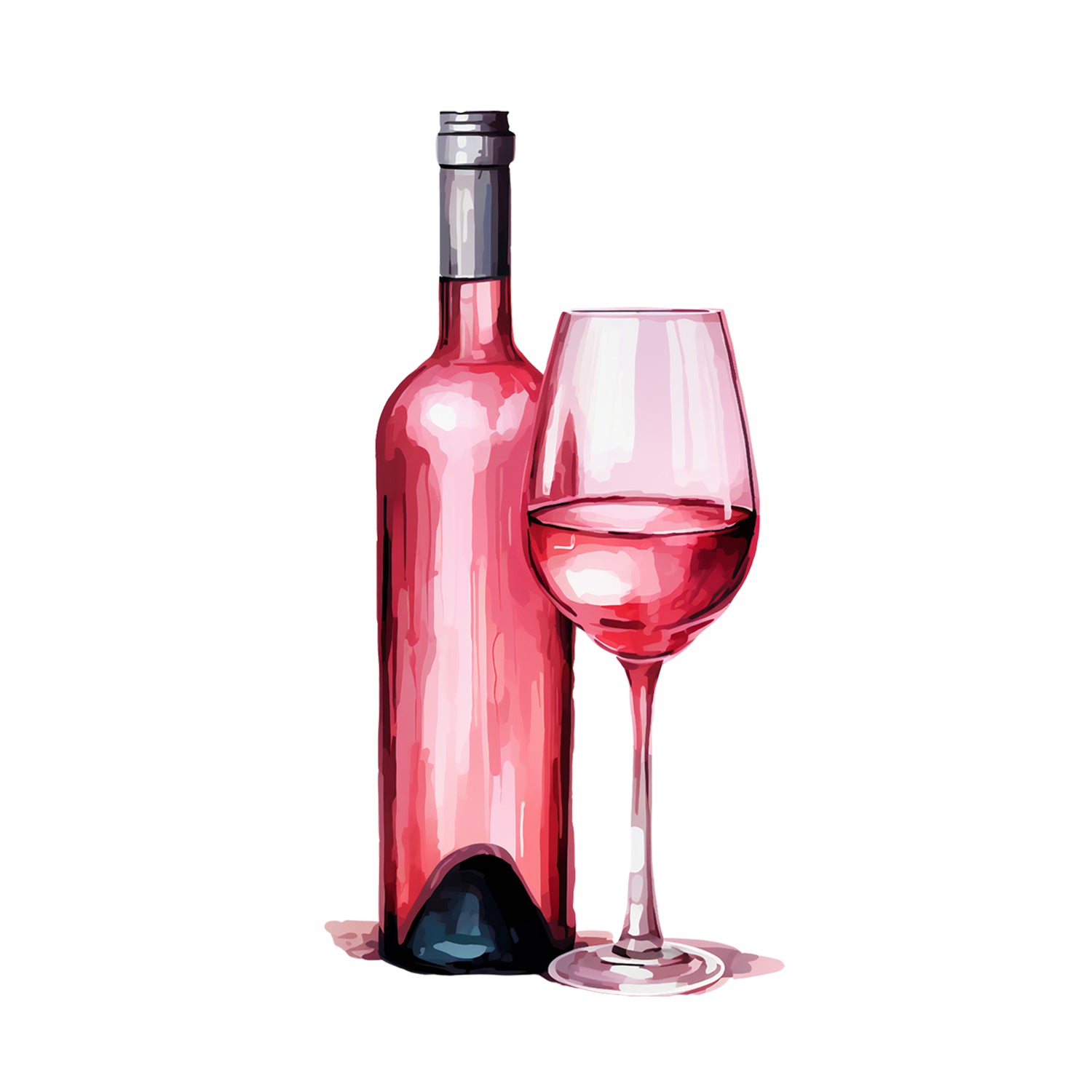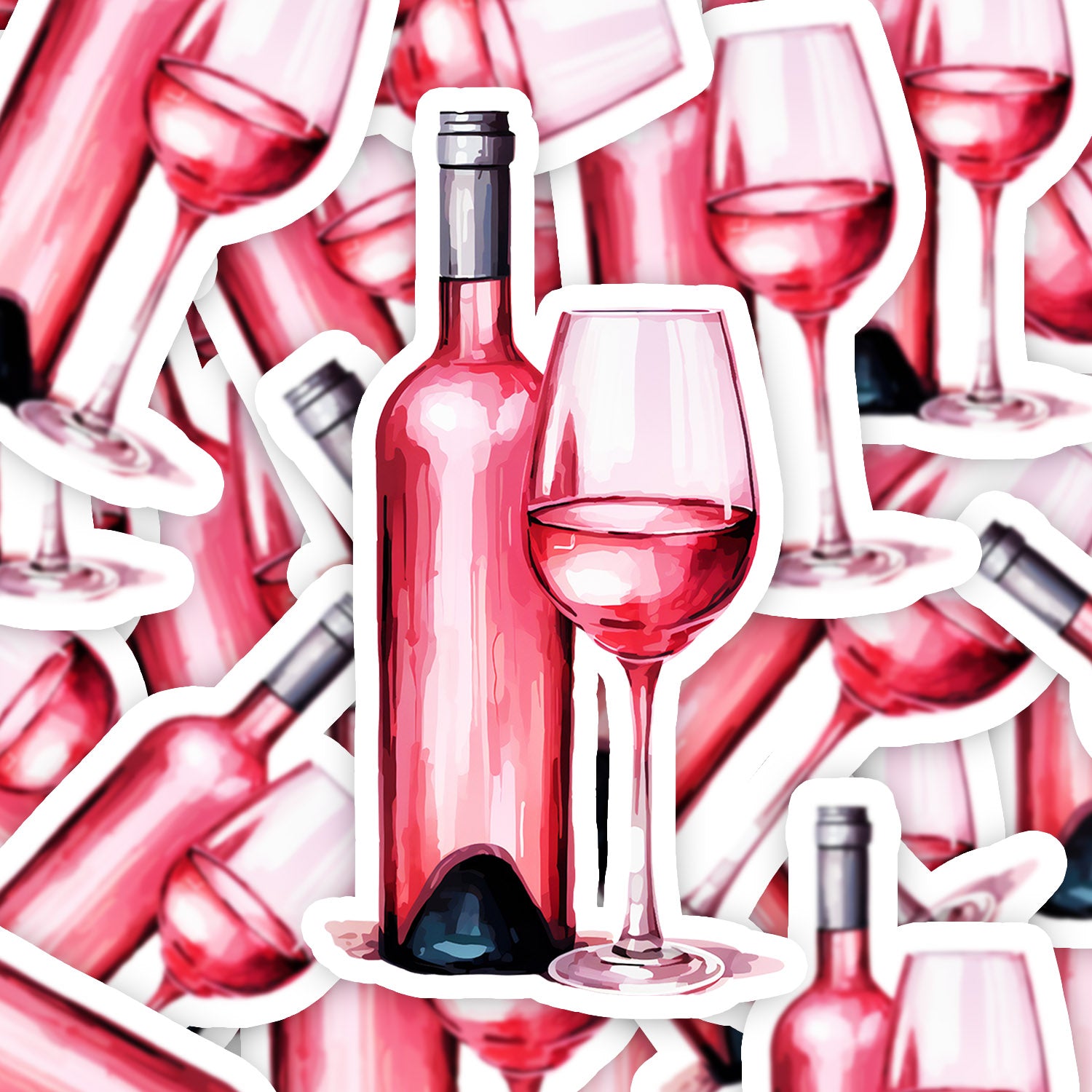 Set 5 bucati, Sticker decorativ, Sticla goala si pahar cu vin rosu, Rezistent la apa, NO10092, 6 cm, Multicolor