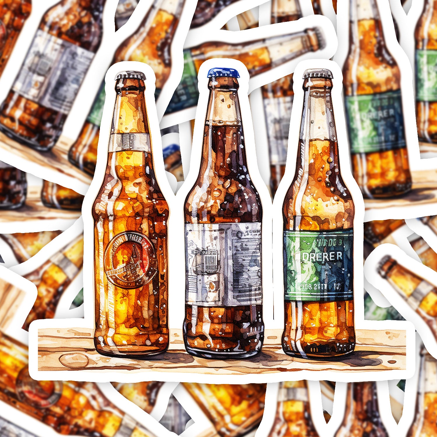 Set 5 bucati, Sticker decorativ, Sticle cu bere, Rezistent la apa, NO10481, 6 cm, Multicolor