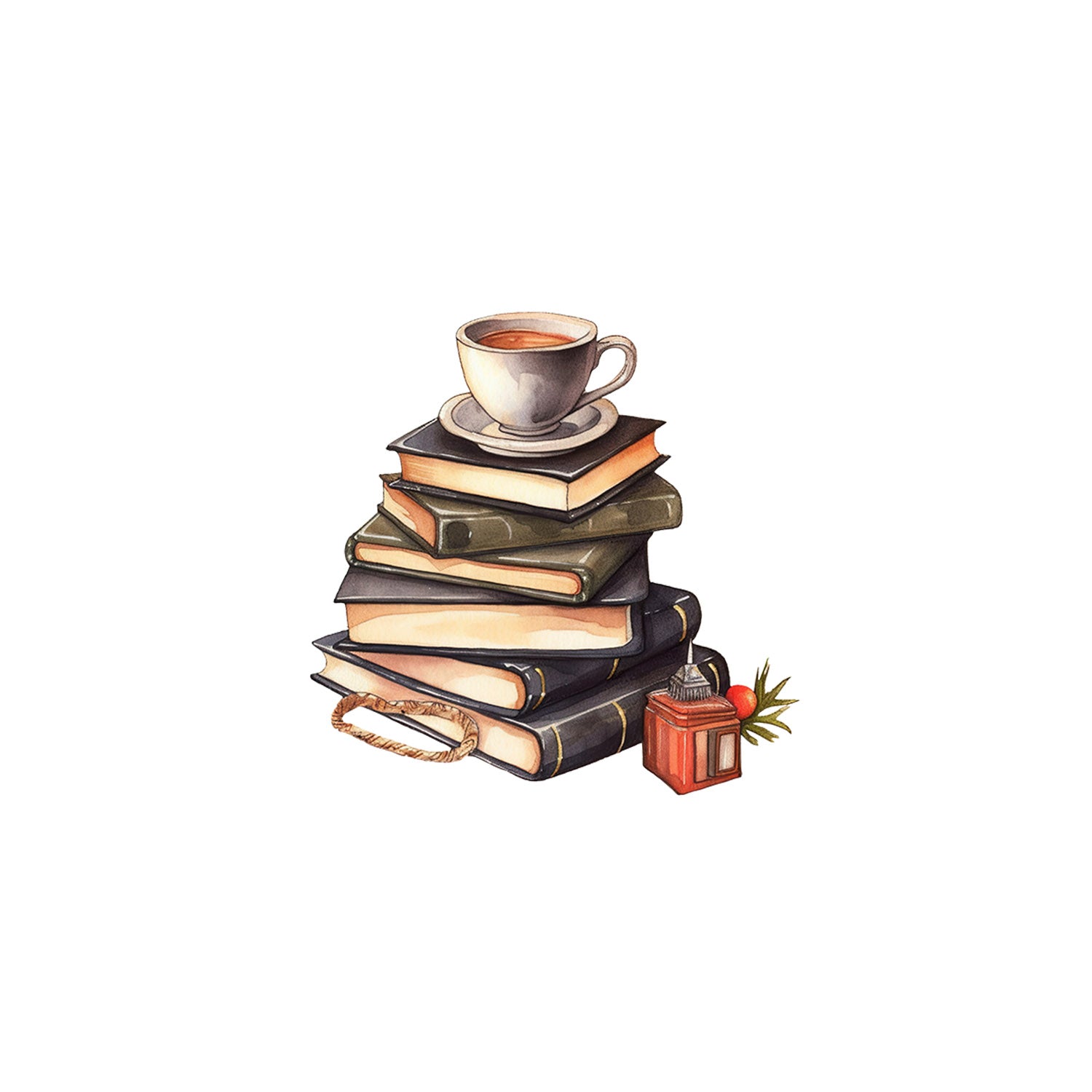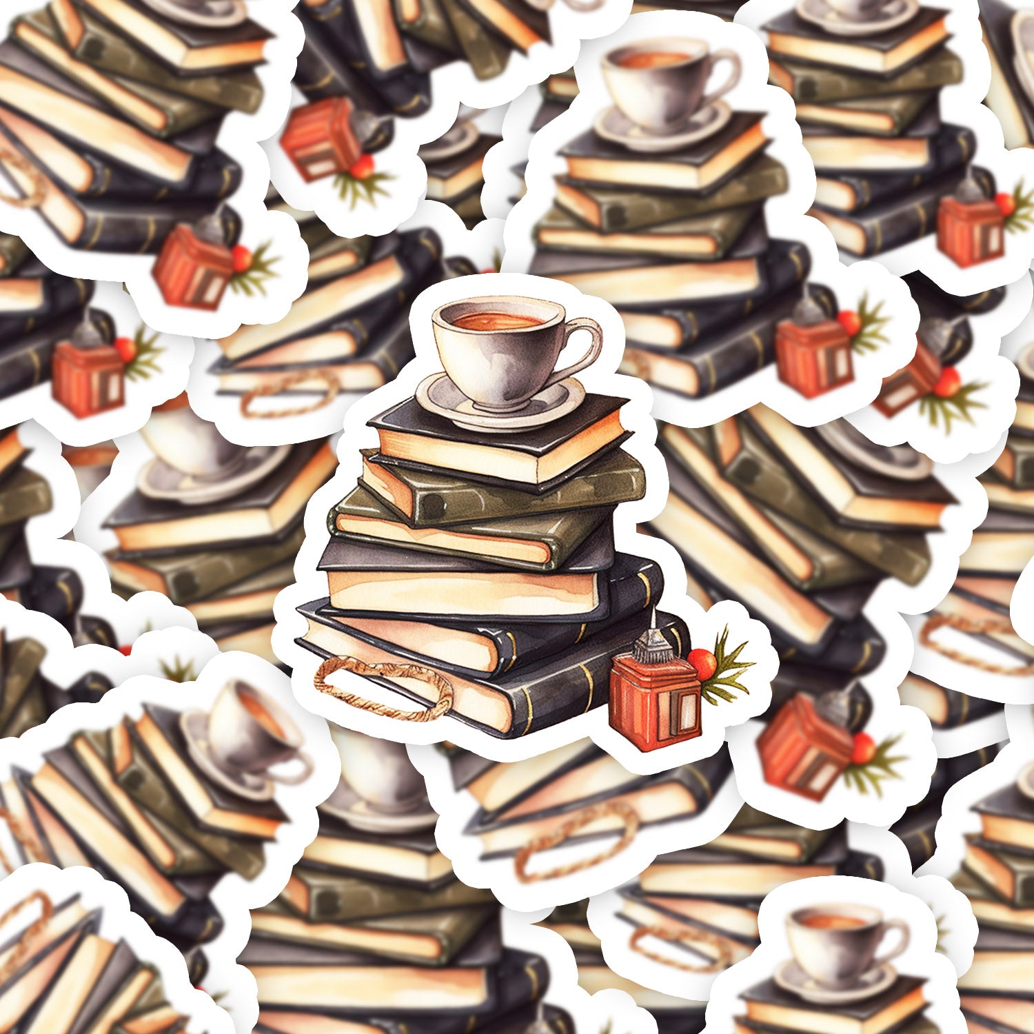 Set 5 bucati, Sticker decorativ, Stiva de carti cu ceasca de cafea, Rezistent la apa, NO15115, 6 cm, Multicolor