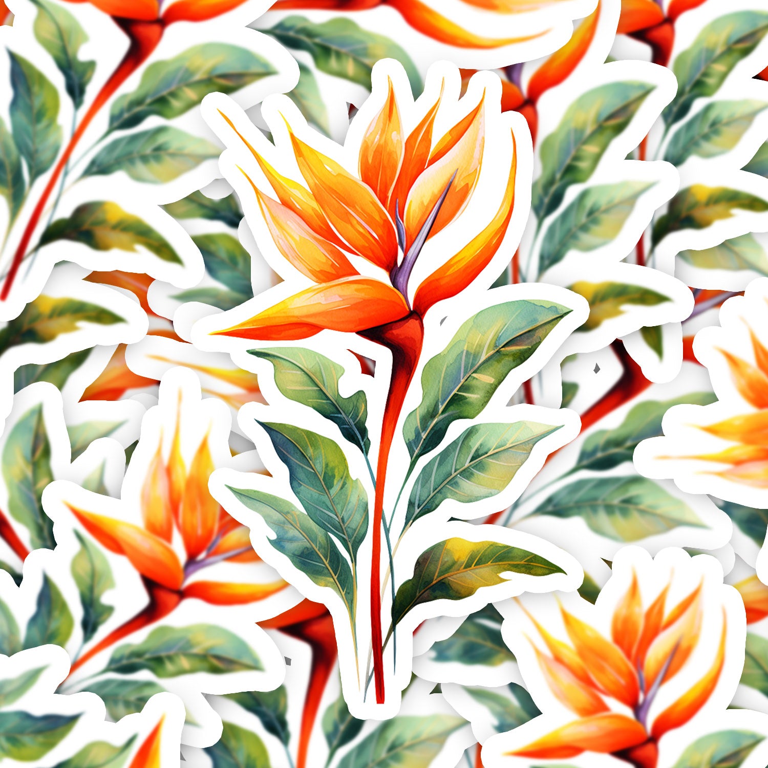 Set 5 bucati, Sticker decorativ, Strelitzia mandra in soare, Rezistent la apa, NO15253, 6 cm, Multicolor
