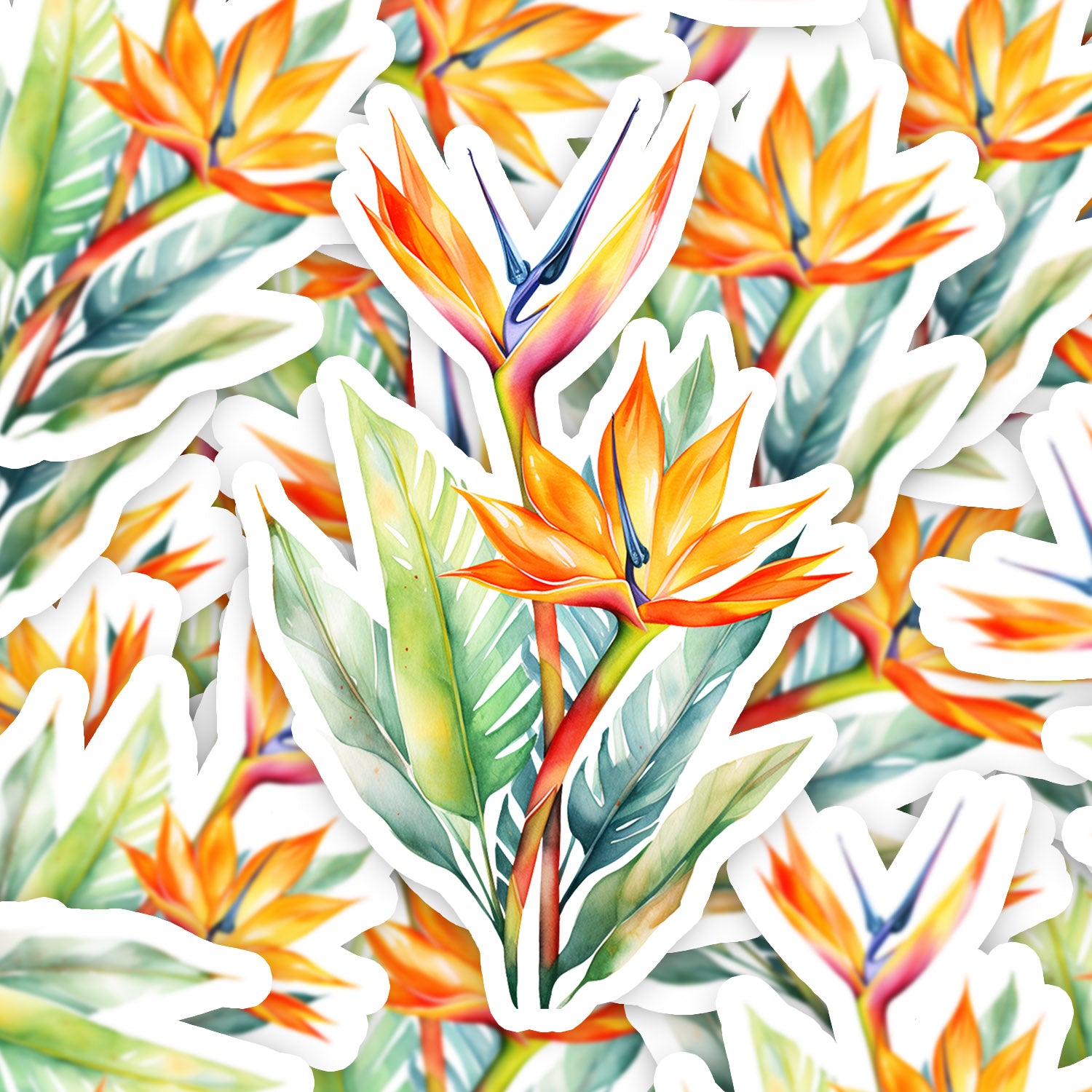 Set 5 bucati, Sticker decorativ, Strelitzia pasarea paradisului, Rezistent la apa, NO12423, 6 cm, Multicolor