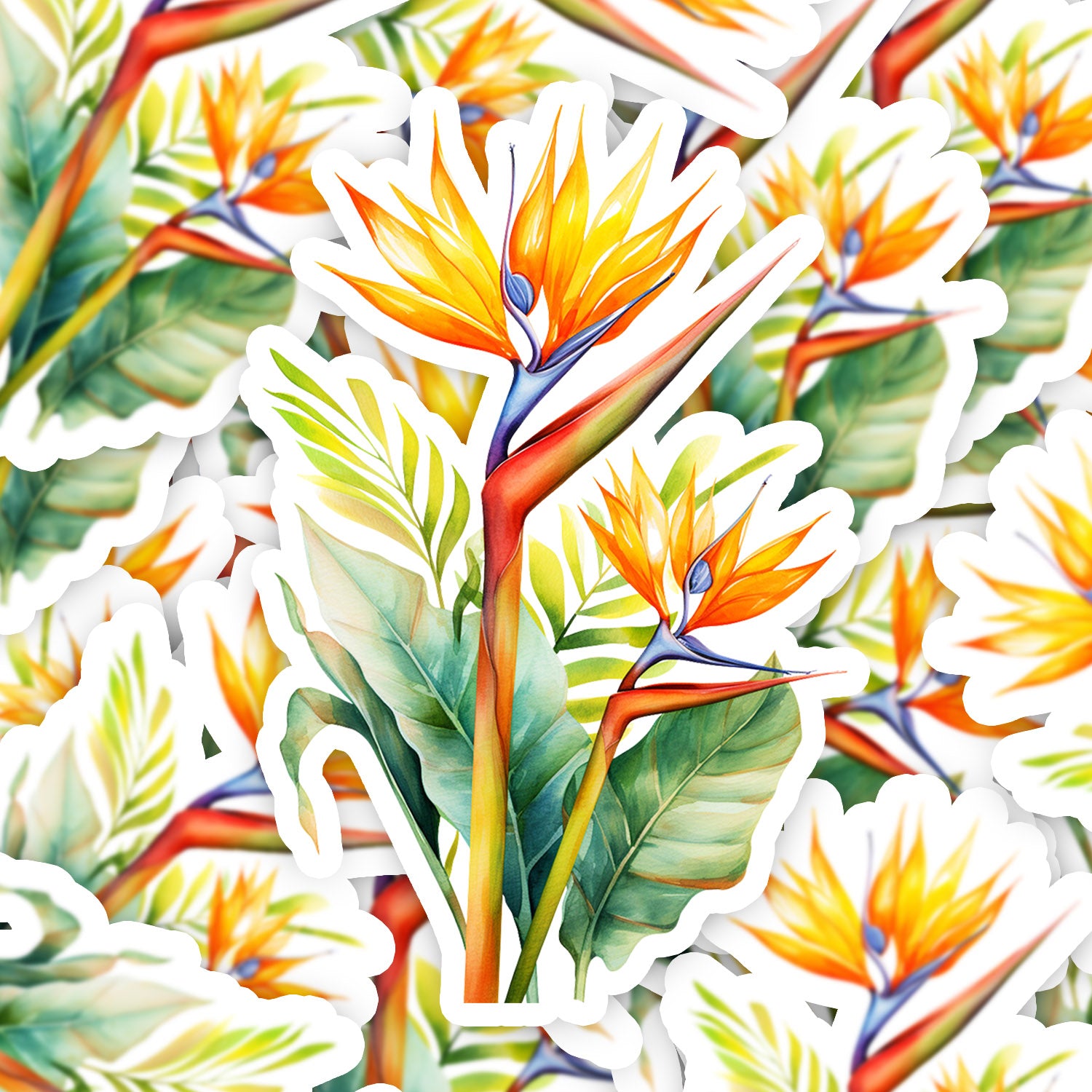 Set 5 bucati, Sticker decorativ, Strelitzia perechea perfecta, Rezistent la apa, NO10873, 6 cm, Multicolor